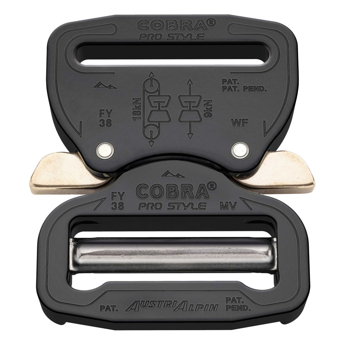 AustriAlpin 38mm / 1.5" Pro Style Black Cobra Buckle - Male Adjustable, Female Fixed, XL Ears - FY38KVF-XL