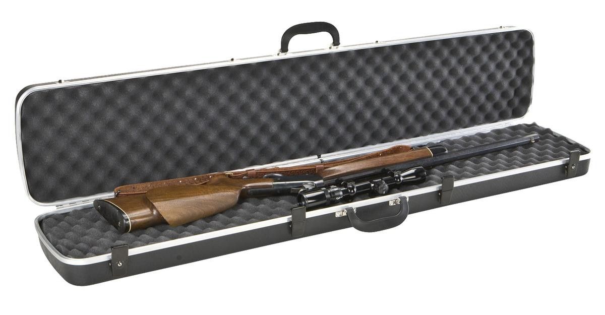 This classic case holds a single rifle with high-mount 50mm scope. With an attractive alligator texture, the DLX series of cases feature strong durable full length piano hinges, a protective aluminium valance, fold-away handles and dual key-lock latches.