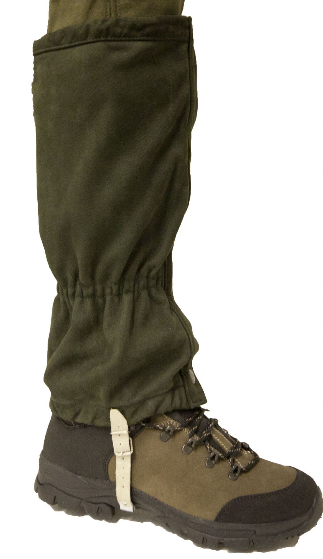 Leather is one of the toughest materials for dealing with walking through tough terrain. Steel under boot wire to keep the gaiters in place.