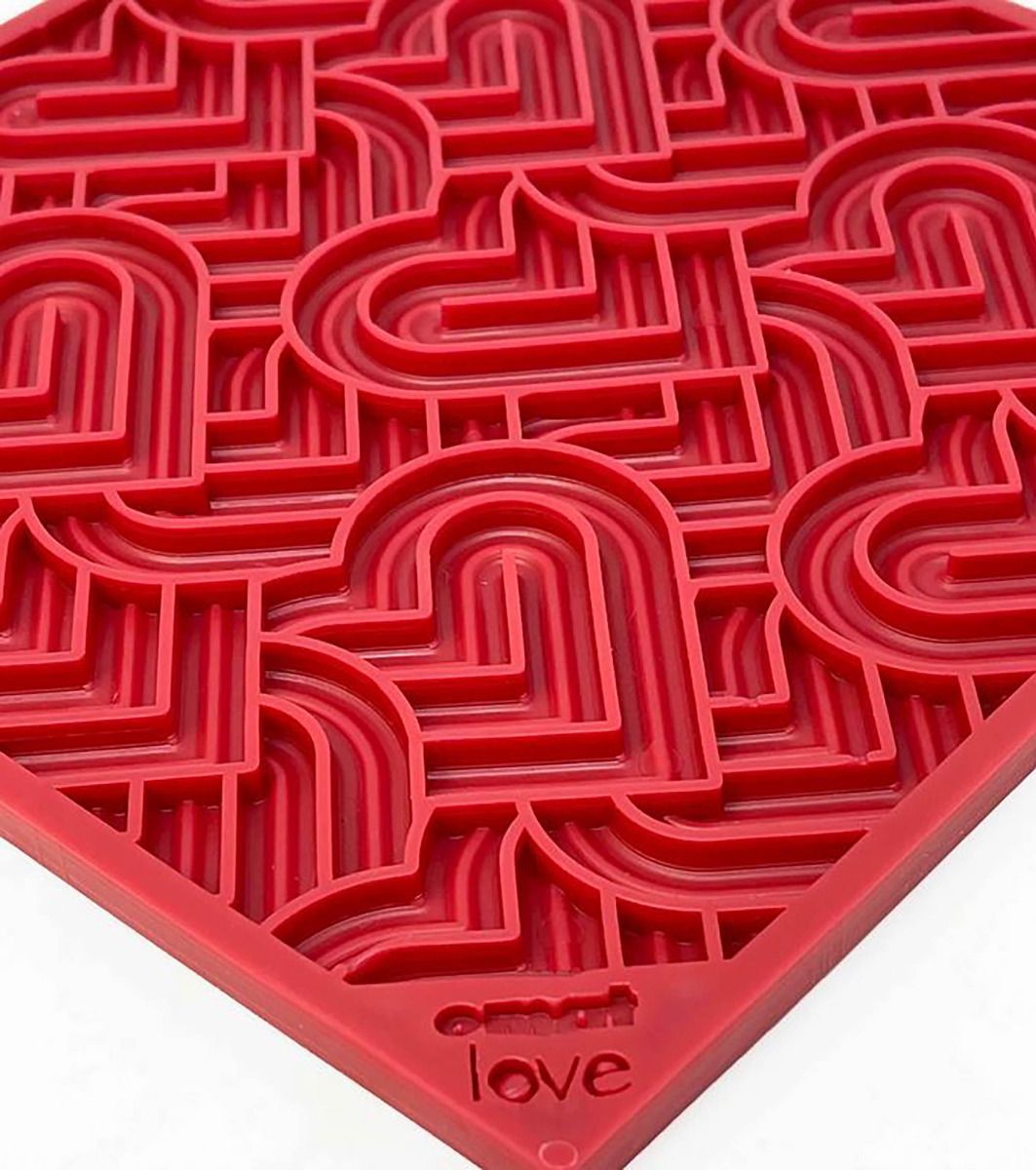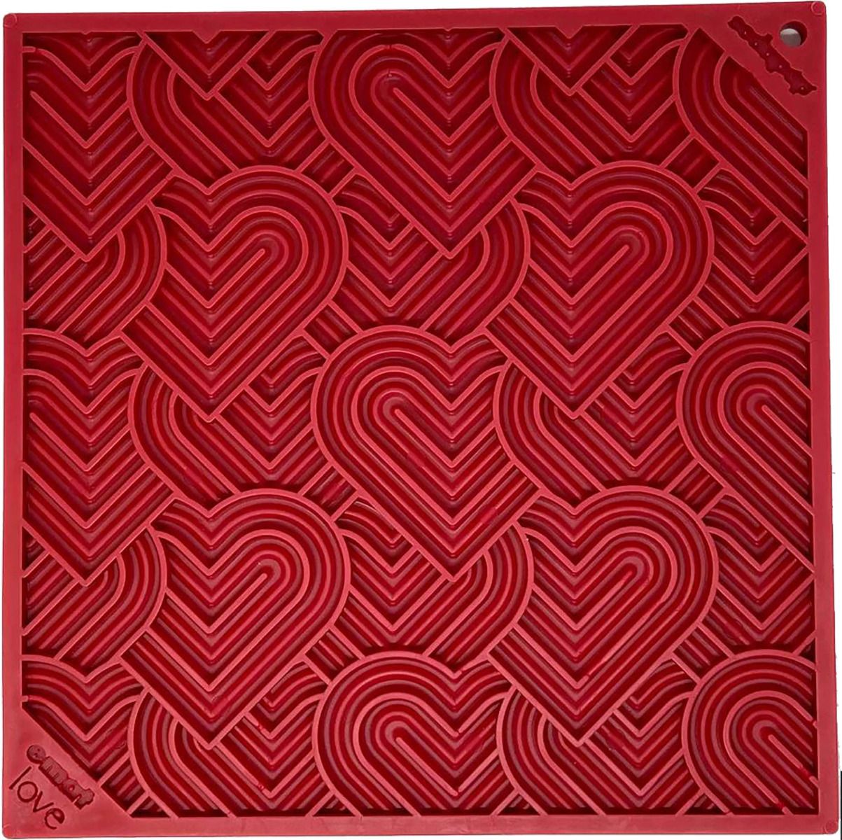 SodaPup Lick Mat - Enrichment EMAT with Heart Design "Love" - Red