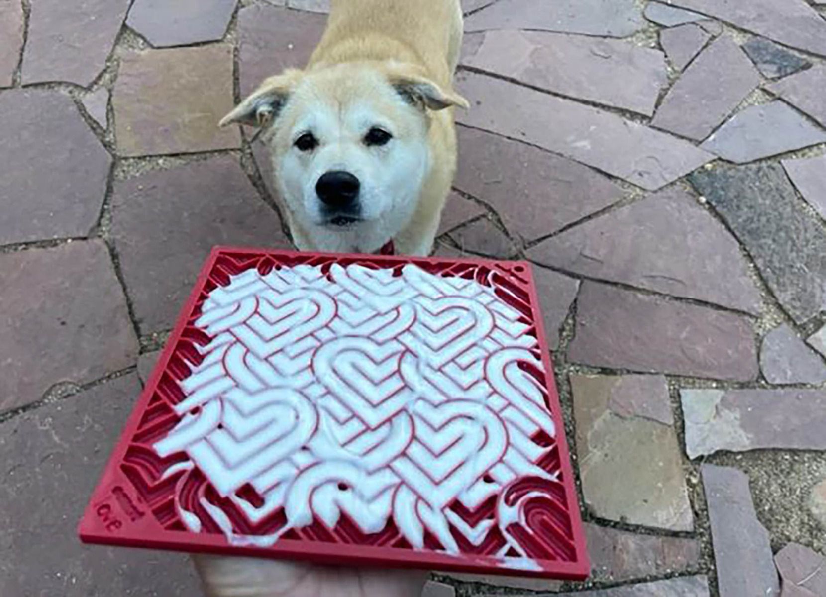 ENRICHMENT: Licking soothes and calms your dog. Spread your pet’s favorite soft treat across the surface of the emat, ensuring the treat is pushed down into the surface of the mat.