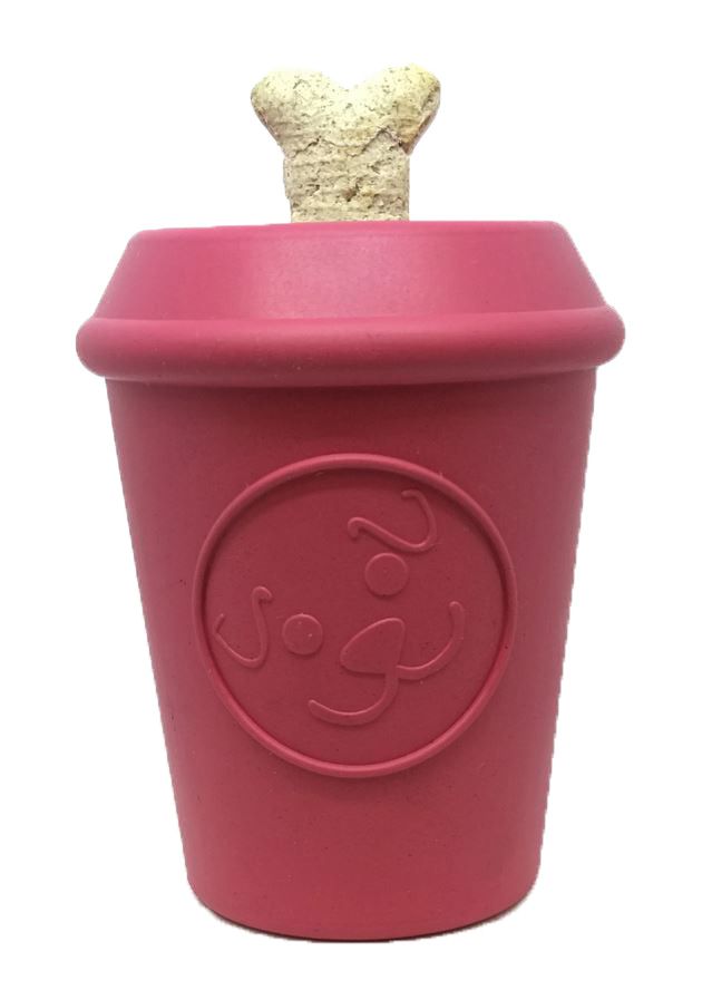 MKB Coffee Cup Durable Rubber Chew Toy & Treat Dispenser - Pink