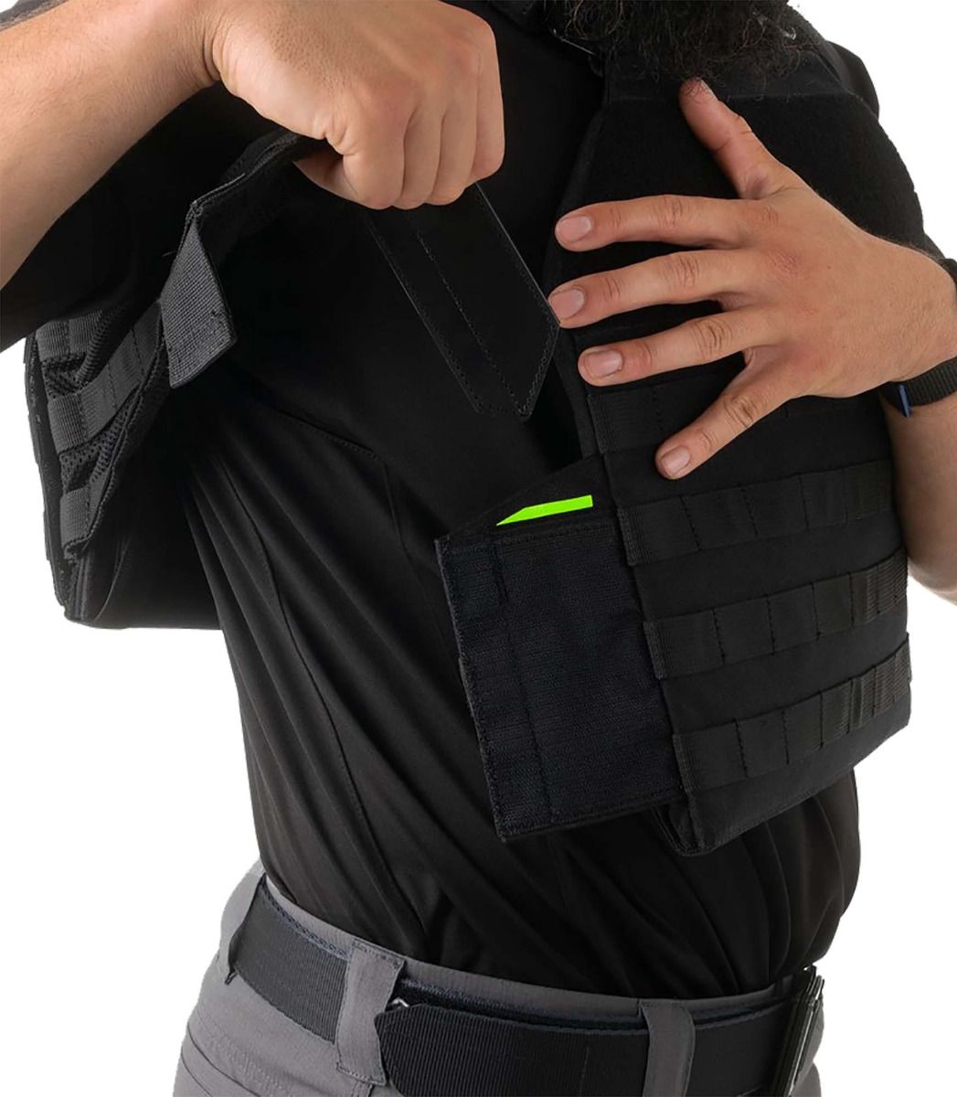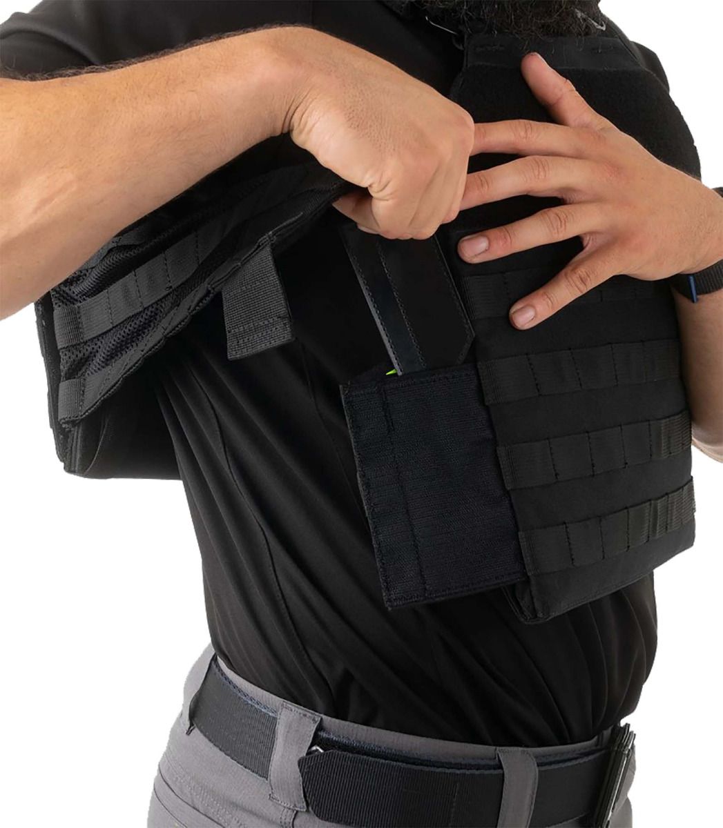 The Specialist Plate Rack is a lightweight, mobile ballistic plate carrier that provides superior protection against a variety of threats. Designed to accommodate shooter’s cut body armor plates to provide optimum mobility and shooting comfort, this highly durable 1000D nylon carrier features MOLLE/PALS throughout for attaching modular equipment, loop panels on the front and rear for ID placards, and an emergency drag handle when in rapid response situations. The self-adjusting shoulder straps with padded mesh ventilation provide maximum comfort and a perfect fit when worn for prolonged periods of time, while the patent pending Indexing Closure System allows easy one-handed access. Perfect for those who demand the highest level of protection and performance.
