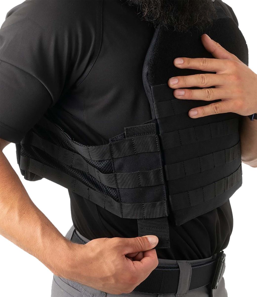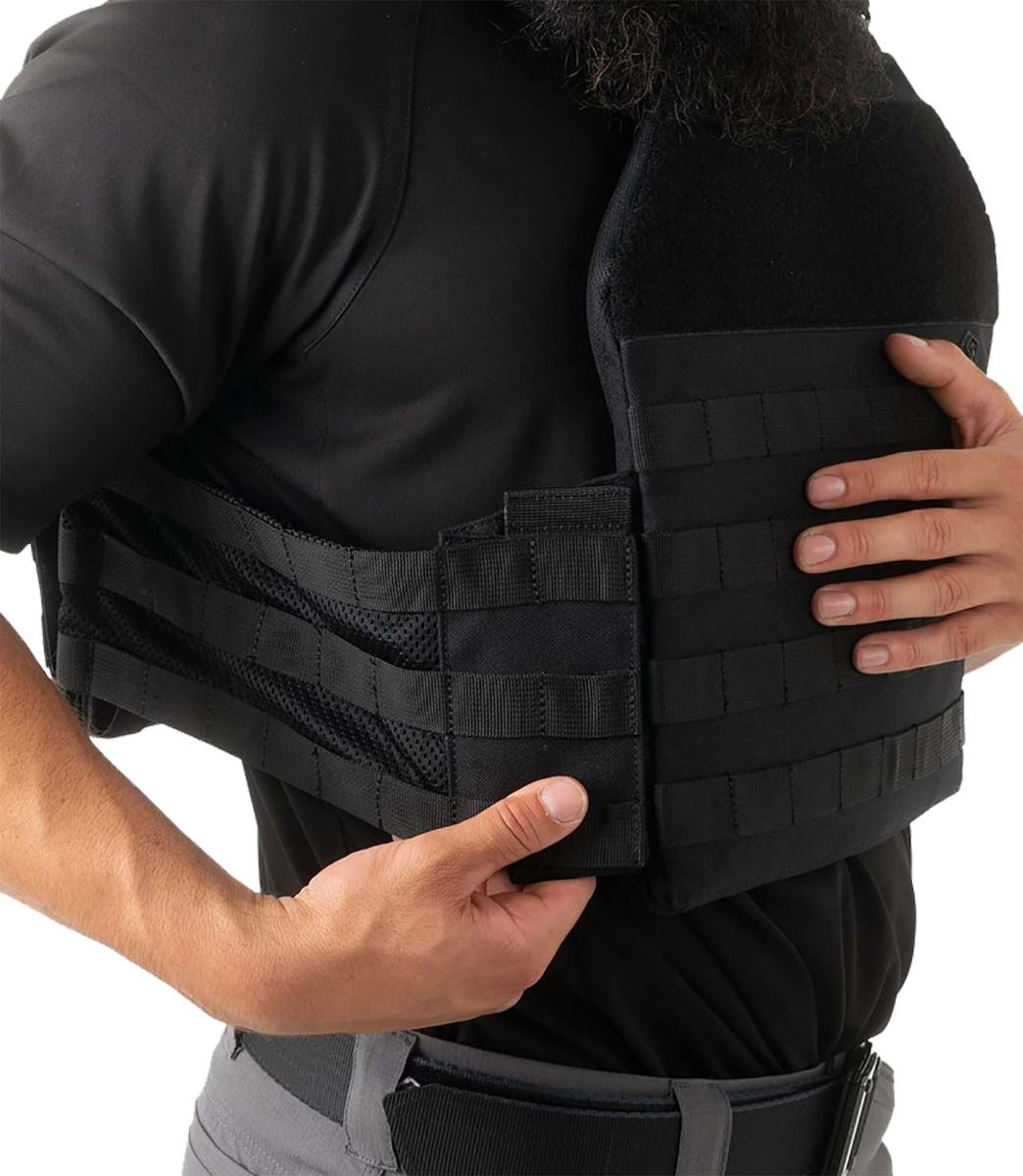 - Padded plate pocket with mesh and venting for comfort and breathability