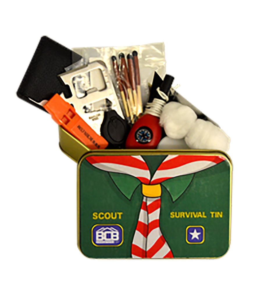 A Scout Survival Tin that fits neatly into your pocket and contains loads of useful gadgets that will help you on your adventures, all packed into one small tin.