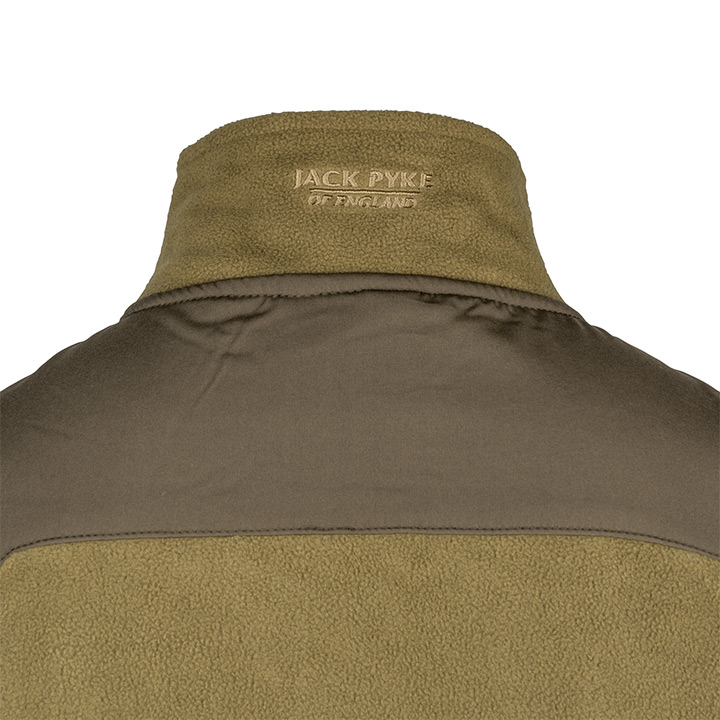 Jack Pyke Rannock Fleece Pullover Dark Mustard – lightweight ¼ zip fleece with contrast panels, zipped chest pocket, and hand pockets for outdoor layering.