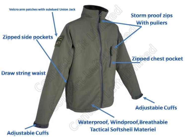 * Velcro patches on each arm complete with one subdued olive green Velcro Union Jack patch