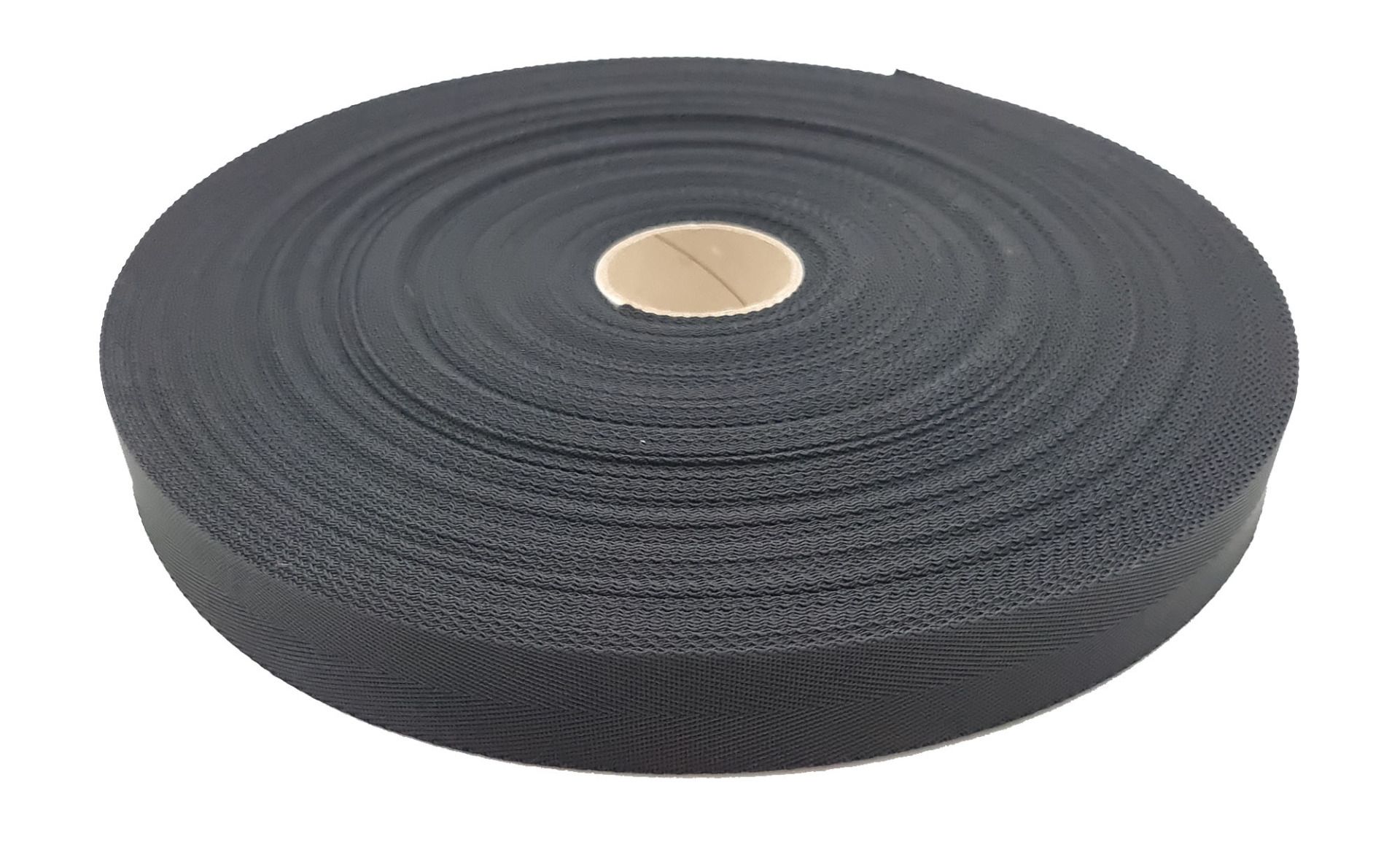 25mm / 1" Black V-Twill / Herringbone Webbing