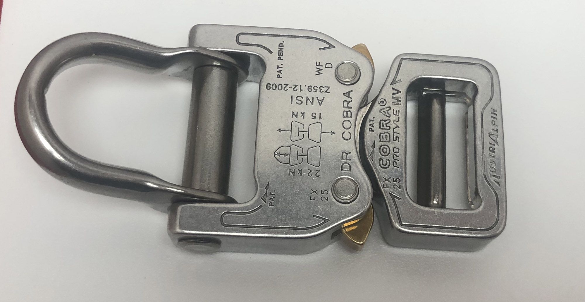 AustriAlpins patented D Ring Cobra Buckles are used by the Military, Para-Sport, Industrial Safety, Offshore Rigging, Flight suits, riggers belts and just about anywhere else you find a D-ring and fastener / buckle.