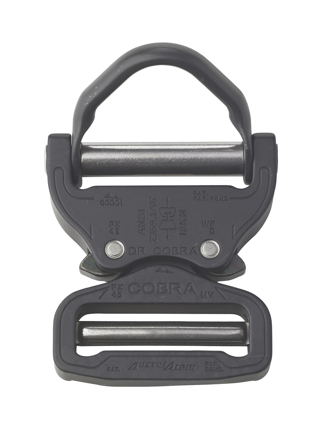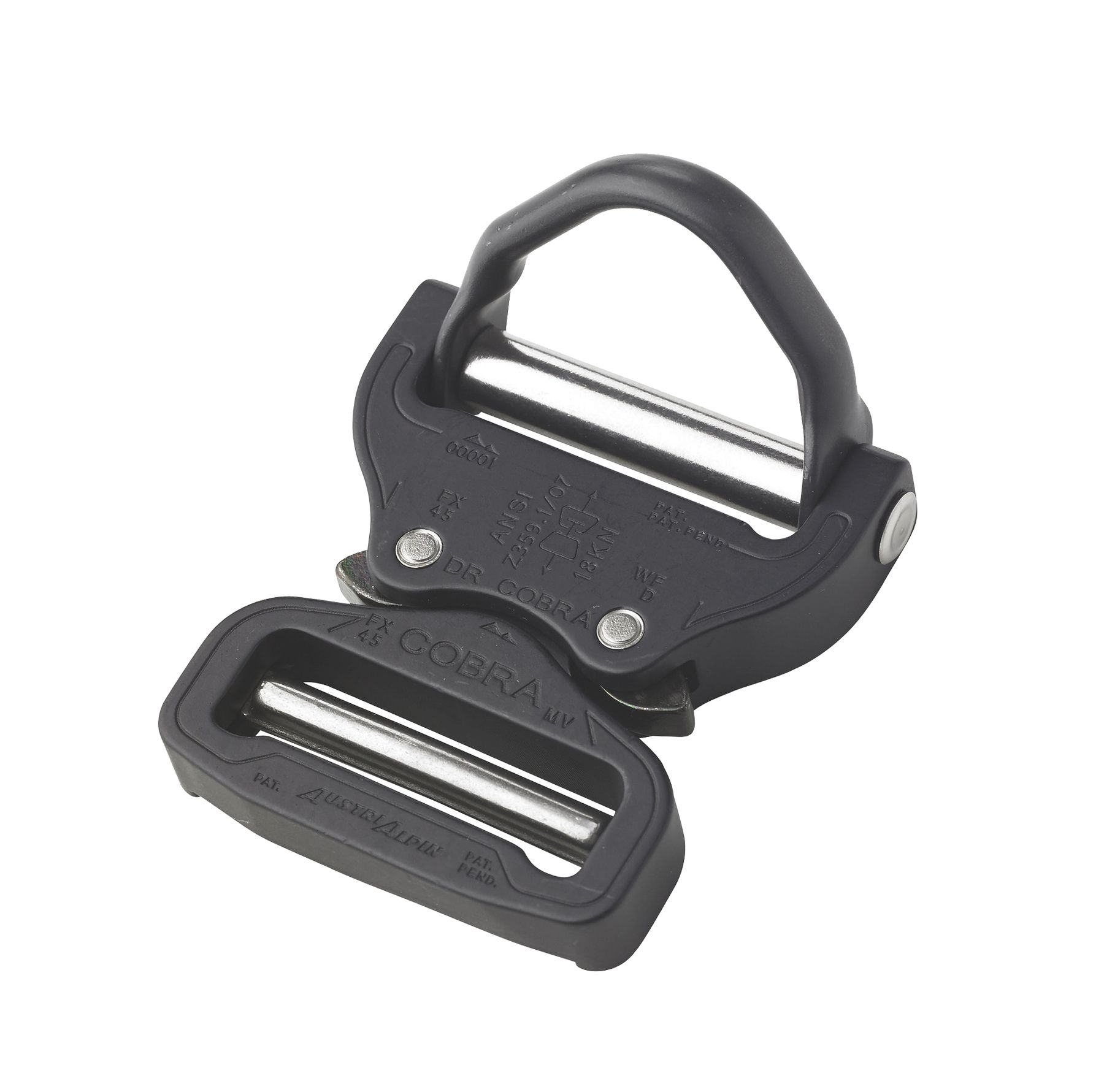 AustriAlpin 45mm / 1.75" Matt Black Cobra Buckle and Black D Ring + Clips FX45MVO-B