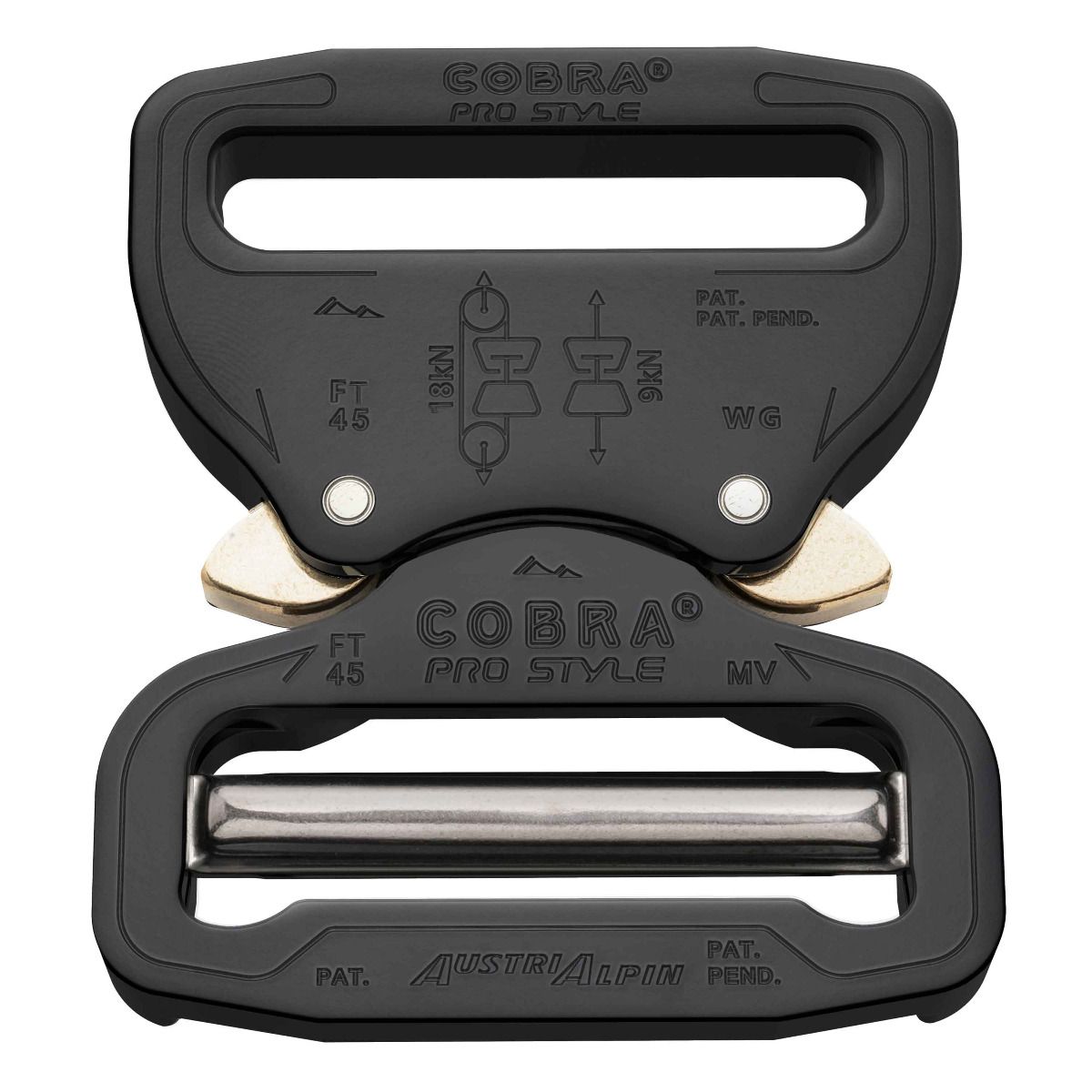AustriAlpin COBRA® PRO STYLE steel buckle, 45 mm width. Dual-lock safety buckle with patented mechanism for extreme loads. Made in Austria.