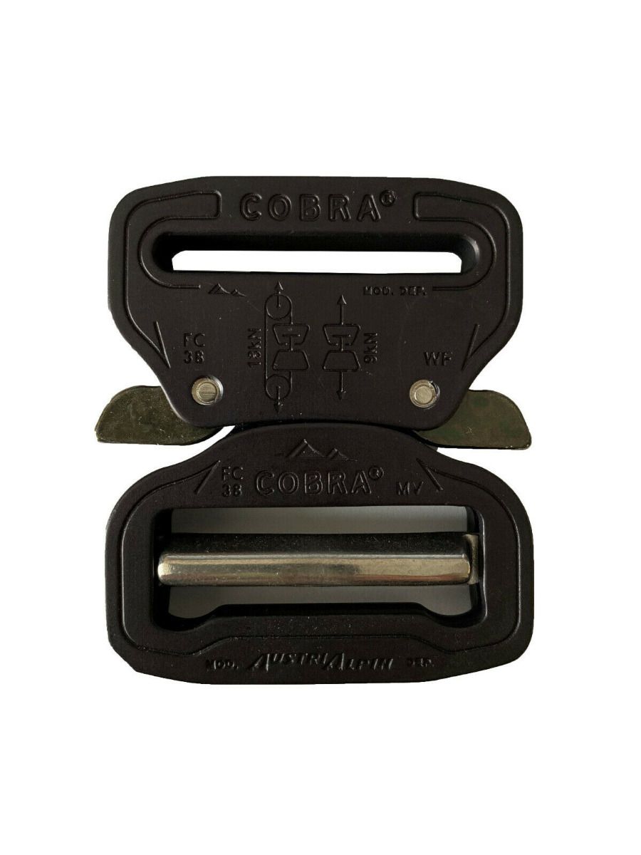 AustriAlpin Cobra Buckle is a patented Buckle that is reportedly the only side quick release buckle that will not open accidentally by either human or mechanical error when under load. Patent Protected Design and Engineering * 18kN or 4000lb (loop configuration) / 9kN or 2000lb (direct load) * Lightweight 7075 aluminum alloy * CNC machined (not forged) for perfect consistency and flawless operation * Precise action brass release mechanism