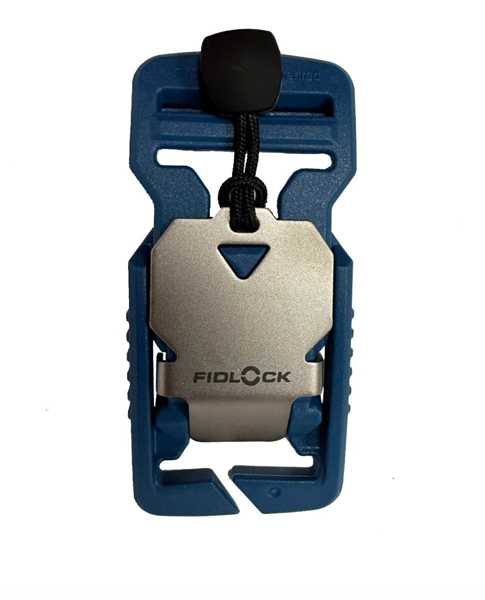 Blue Fidlock V-Buckle - 25mm / 1" Split bar + Stainless Steel Pull Tab (Pantone 7699c)