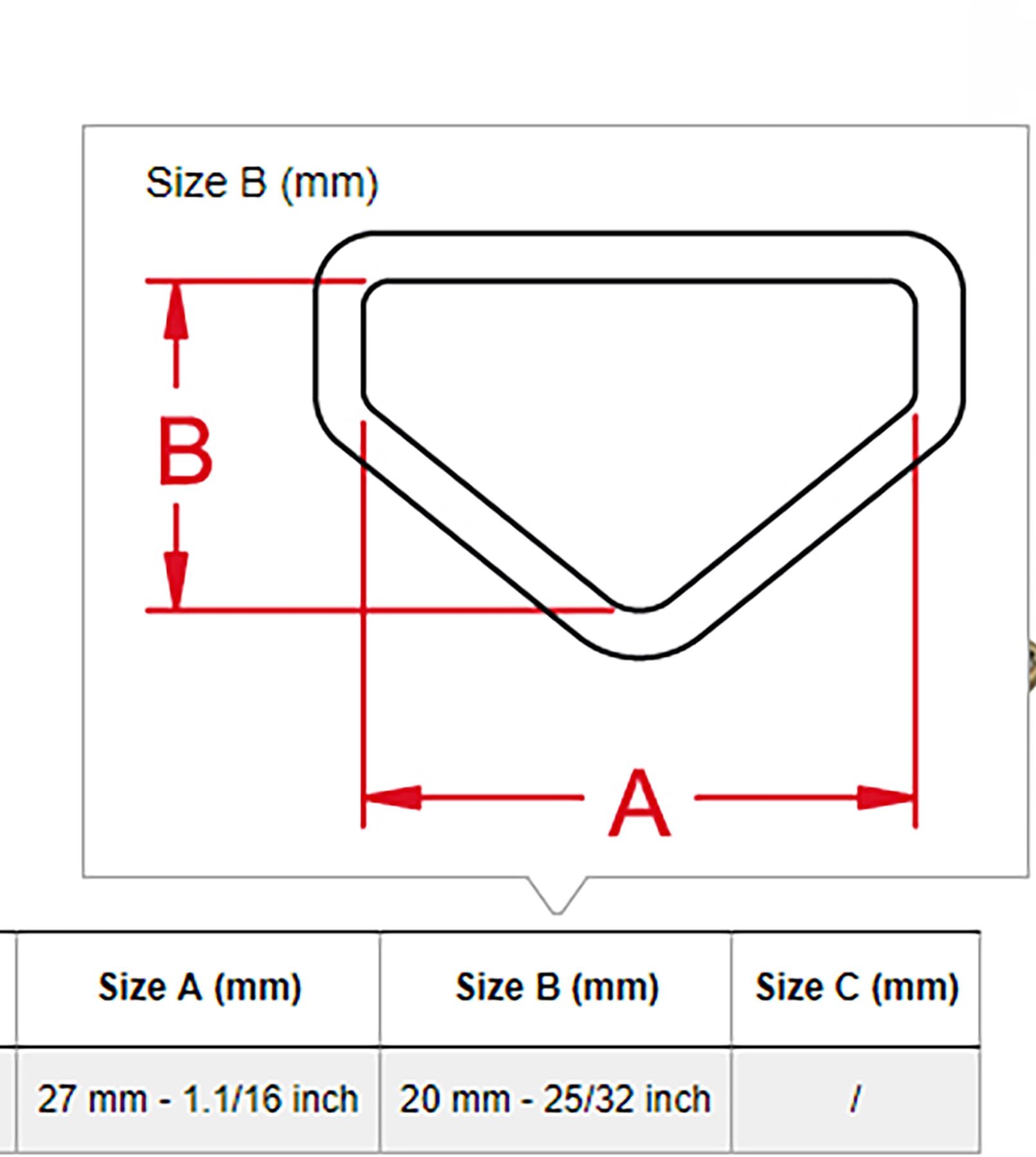Size: A- 27 mm - 1.1/16 inch, B20 mm - 25/32 inch
