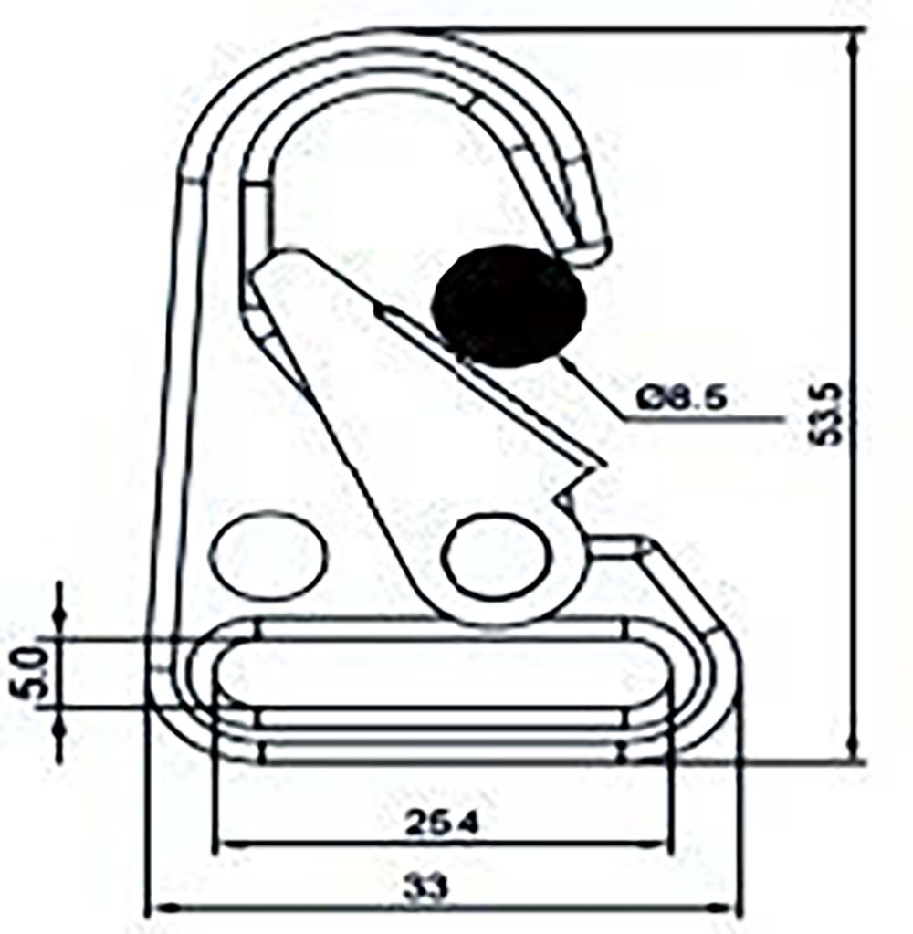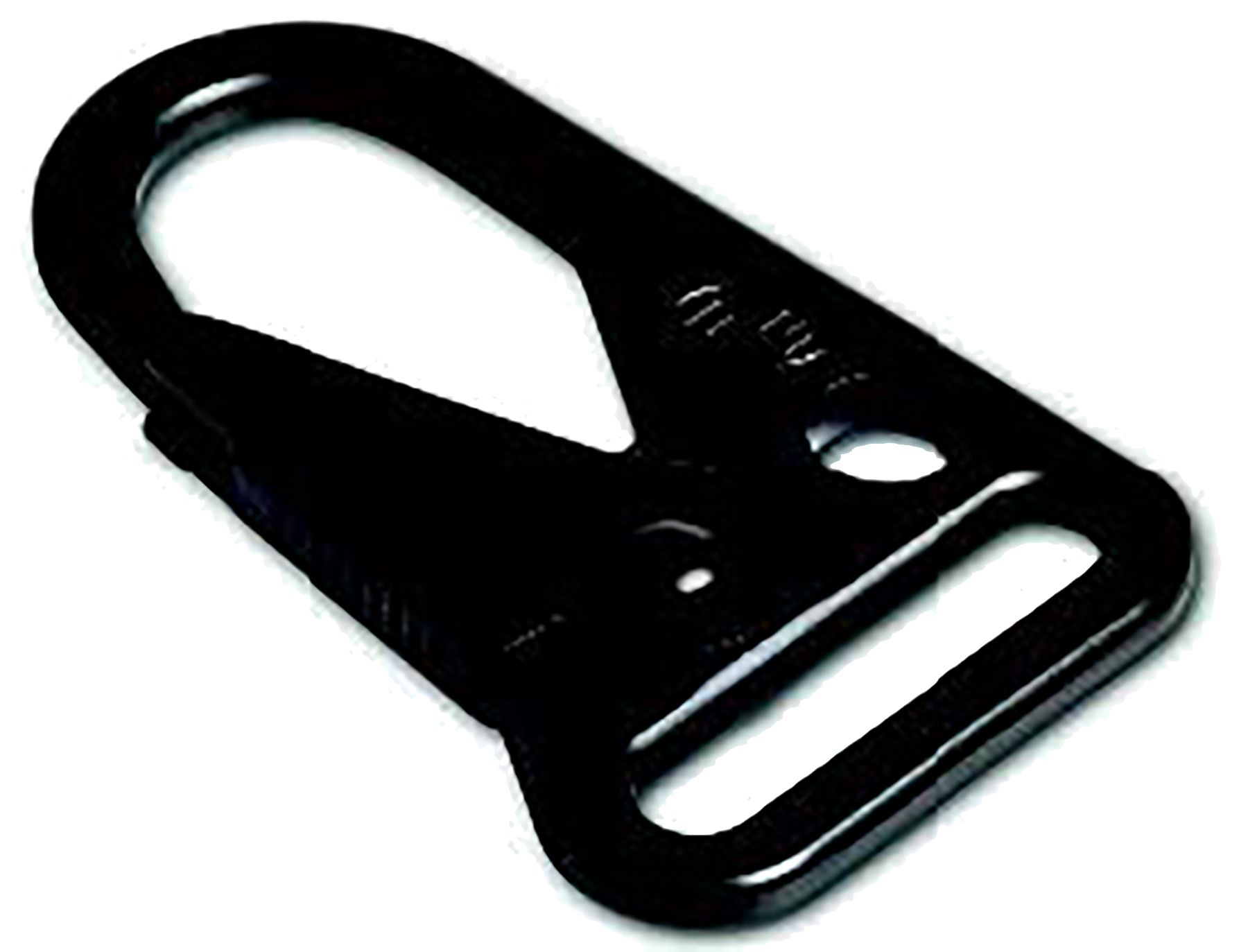 HK Style Snaphook with extra wide gate opening. This hook offers a flat and strong connection from a 25 mm webbing to eyelets or loop connection points up to 8.5mm.