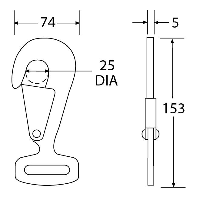 The 5050 is a heavy-duty Flat Snap Hook designed specifically for use with 50mm webbing. Made from high-strength pressed carbon steel, it boasts a breaking strength of 5000kg and a lashing capacity of 2500daN, making it ideal for demanding load restraint applications.