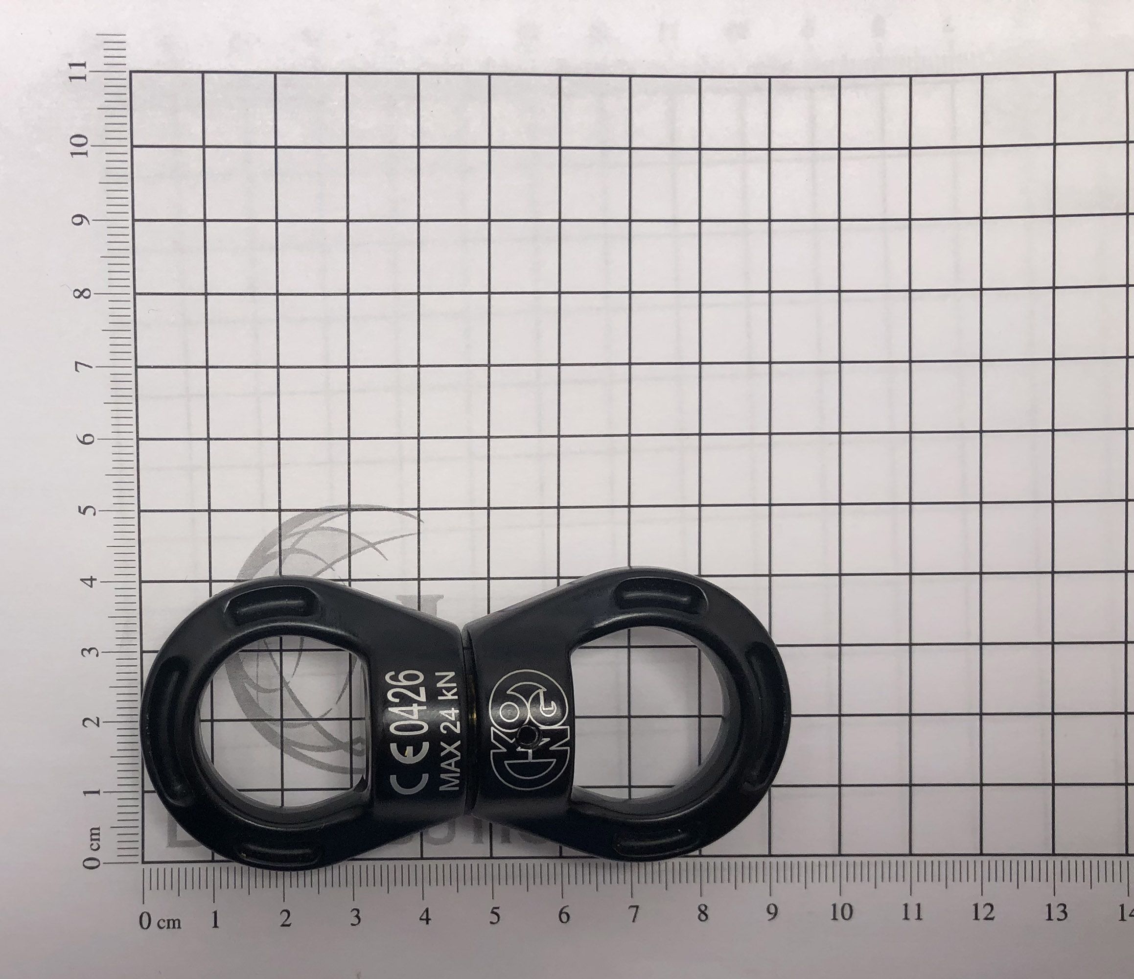 Aluminum swivel that prevents the rope from twisting when a load is suspended.