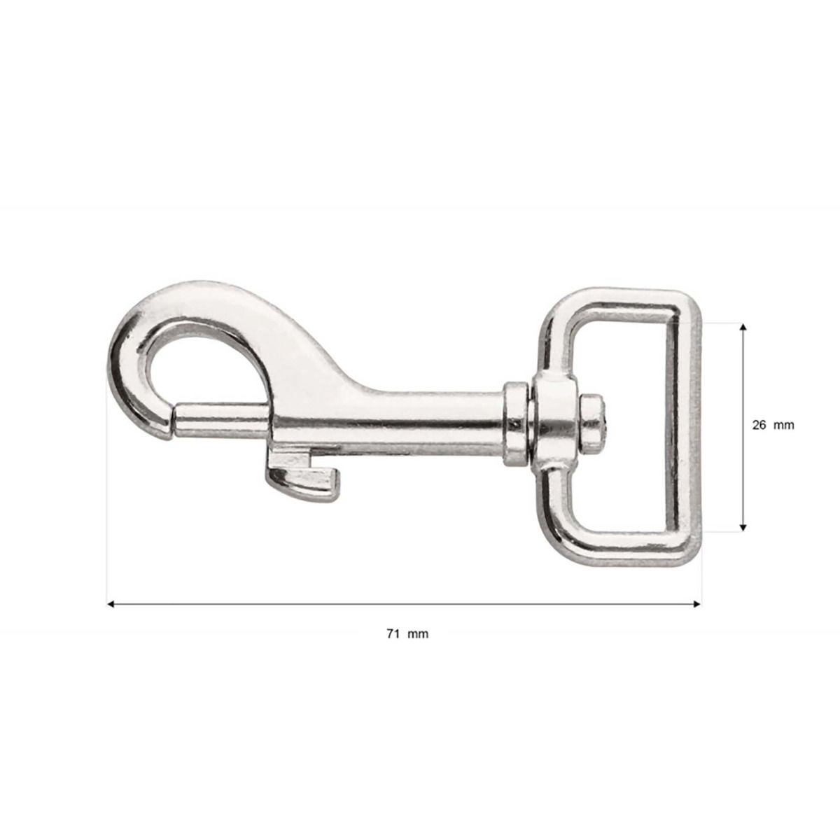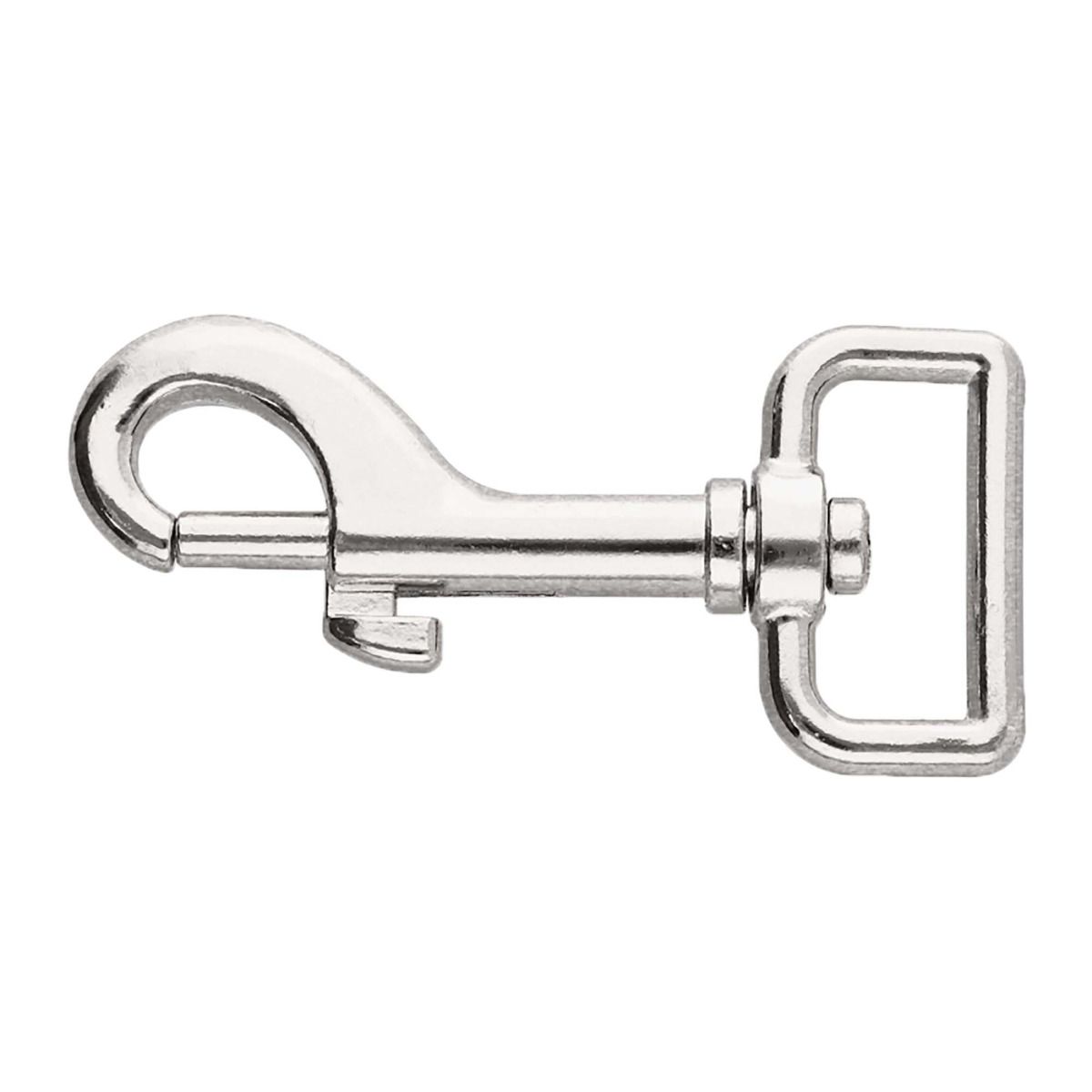 A versatile metal snaphook with a nickel coating. Designed for use with 25mm webbing. This reliable snaphook offers a secure and convenient attachment solution for a variety of applications. With its sturdy metal construction and durable nickel coating, this snaphook provides strength and resistance to corrosion. Its simple and efficient design allows for easy and quick attachment, making it suitable for various purposes. Whether you need to connect leashes, leads, keychains, bags, straps, or other items, this metal snaphook is a versatile choice that ensures reliable and hassle-free connections.
