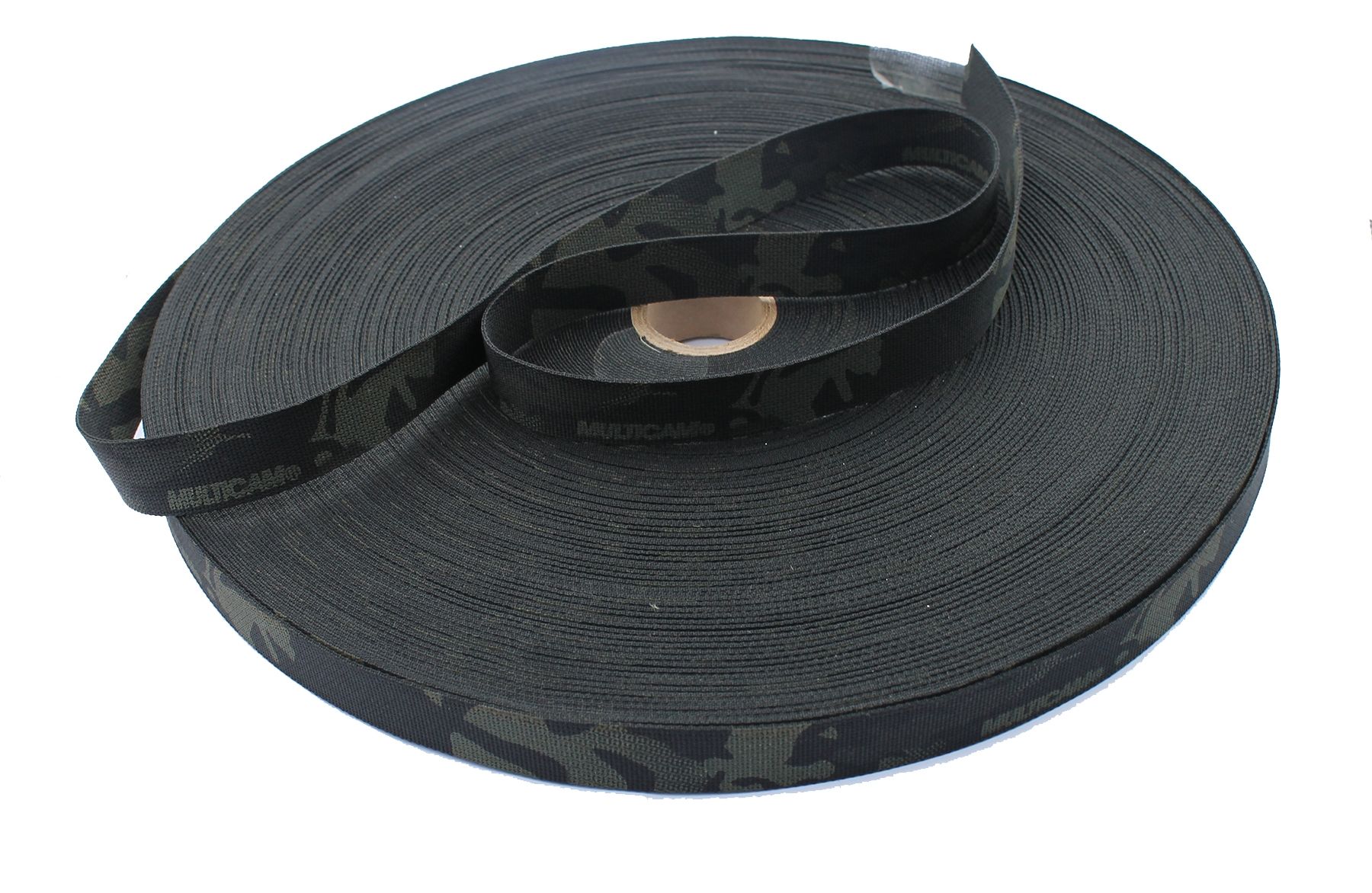 25mm - 1 Inch Mil Spec 17337 Nylon Webbing in Multicam Black. Pattern is printed on both sides and features MMI's exclusive CTEdge™.