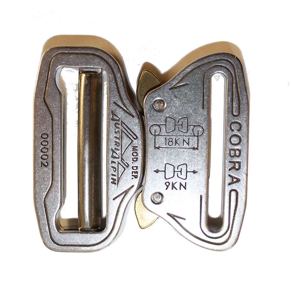 AustriAlpin Cobra buckles (patented) are, without equal, the world's safest, most finely crafted, and strongest load bearing quick release fasteners available.