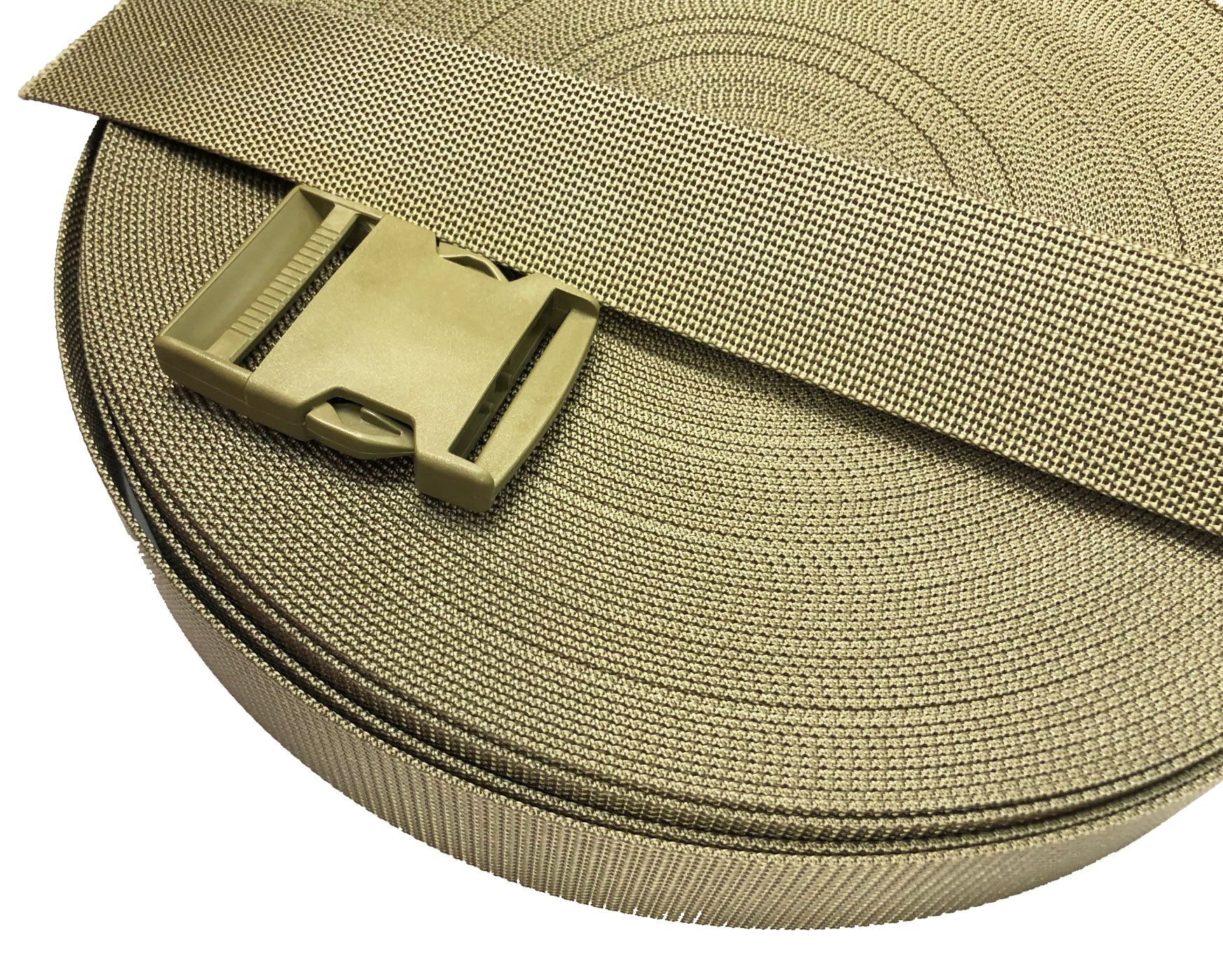 With a Tensile Strength: 25,000 N (Over 5500lbs breaking strain) this webbing is suitable for a massive range of applications including harnesses, industrial straps and parachuting harnesses, the webbing is exceptionally resistant to weathering and abrasion.