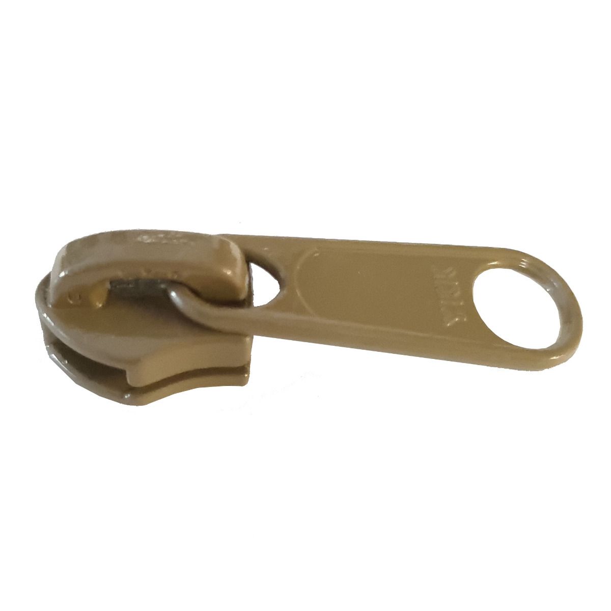 Number 8 Coyote Brown YKK Slider used on Number 8 Chain Coil. YKK are regarded as making the best zippers in the world, used on a wide range of products.