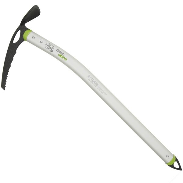 Technical mountaineering ice axe. Light alu alloy bent body, zinc plated steel peak and spike.