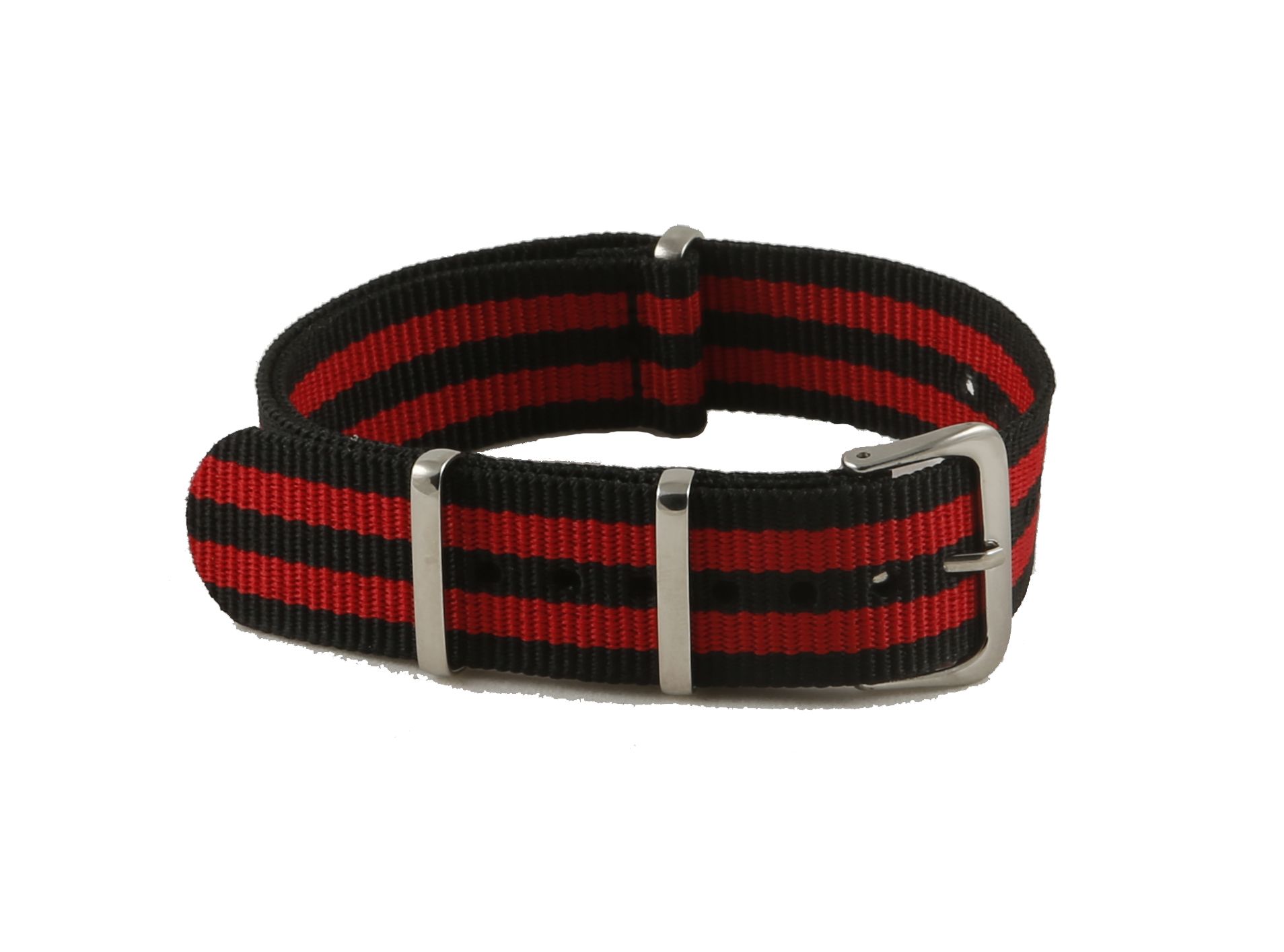 2 Stripe Red on Black NATO G10 Nylon Military Watch Strap