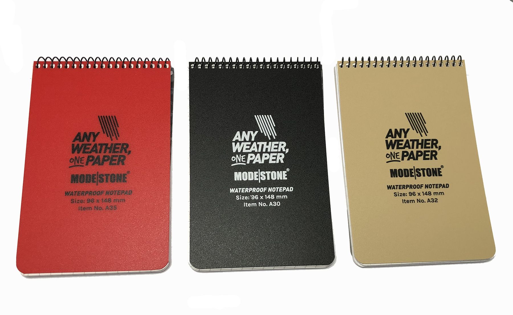 Stone paper is thoroughly waterproof and will not suck water on the cut edges. Modestone waterproof notepad is well suited for dirty, sweaty or humid conditions.