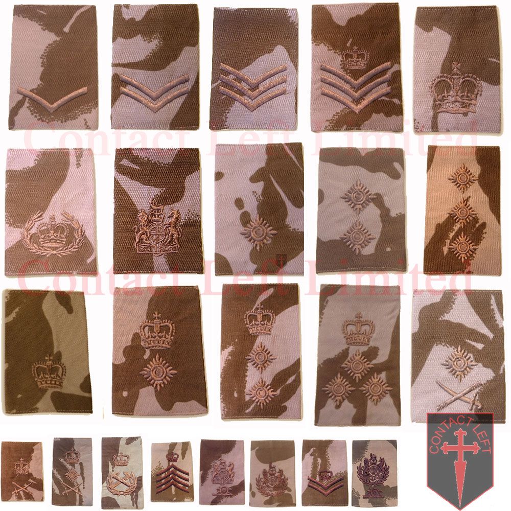 These Desert DPM rank slides where worn by the British Military upto and around 2010-2011 (and in some cases beyond) during desert operations. These include the First and Second Gulf War and the majority of the Afghanistan Conflict.