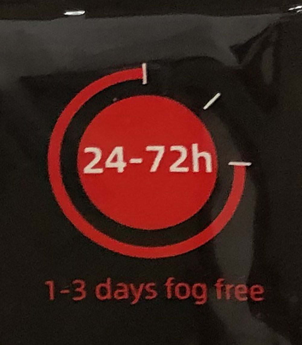 The unique EXCLUSIVE Anti-Fog molecules. After wiping it will prevent the condensation of water vapor on the lens, instead of forming small water droplets on the lens that hinder the sight. You will no longer be troubled by fog.