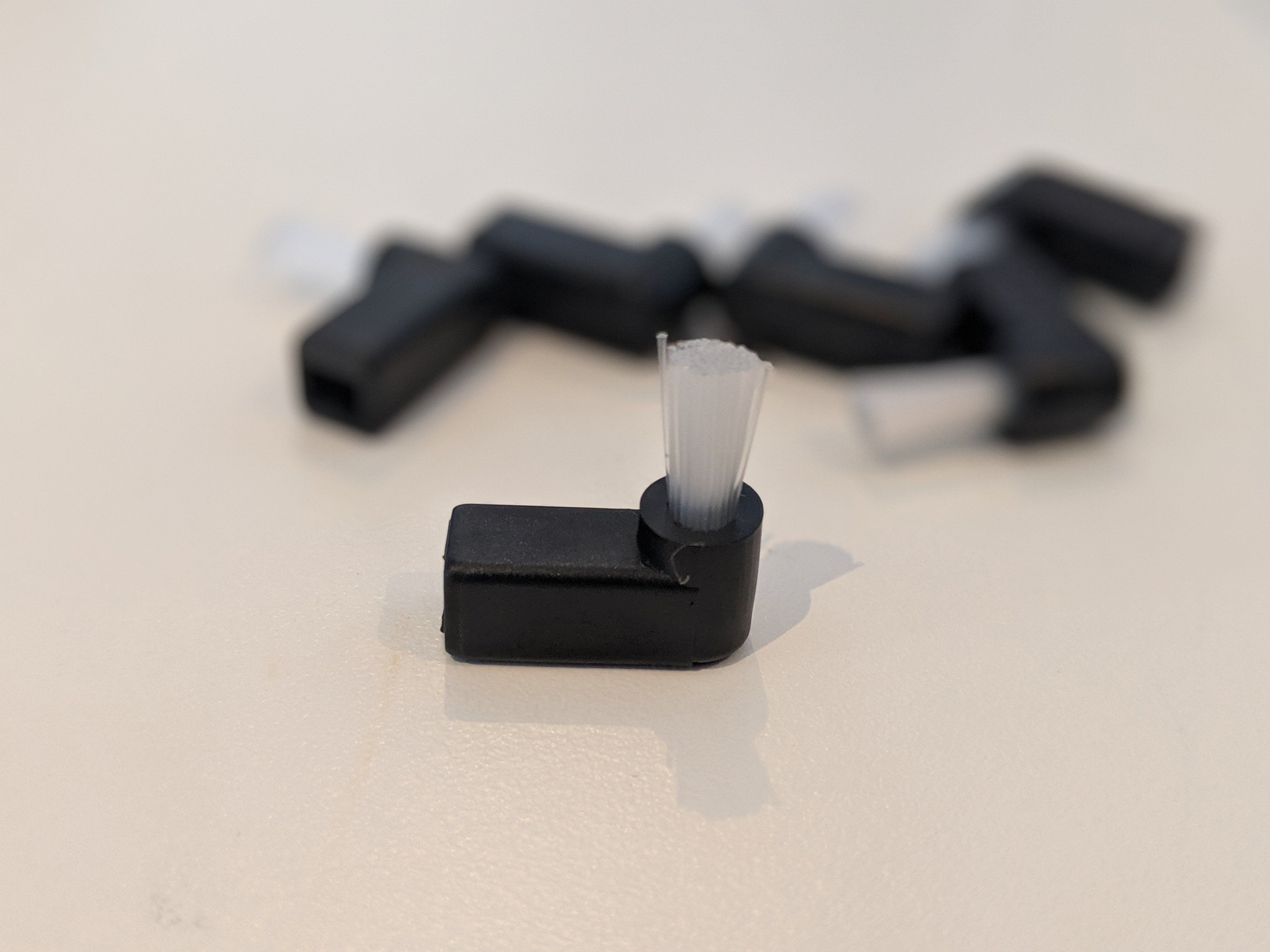 Green Brush Heads: Softer .35mm Nylon 610 have an adhesive quality to pick up debris as well as dislodge.
