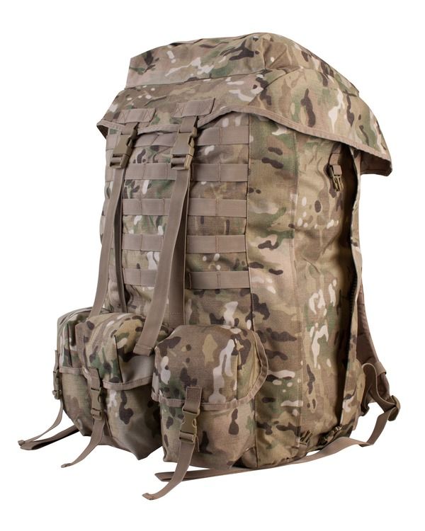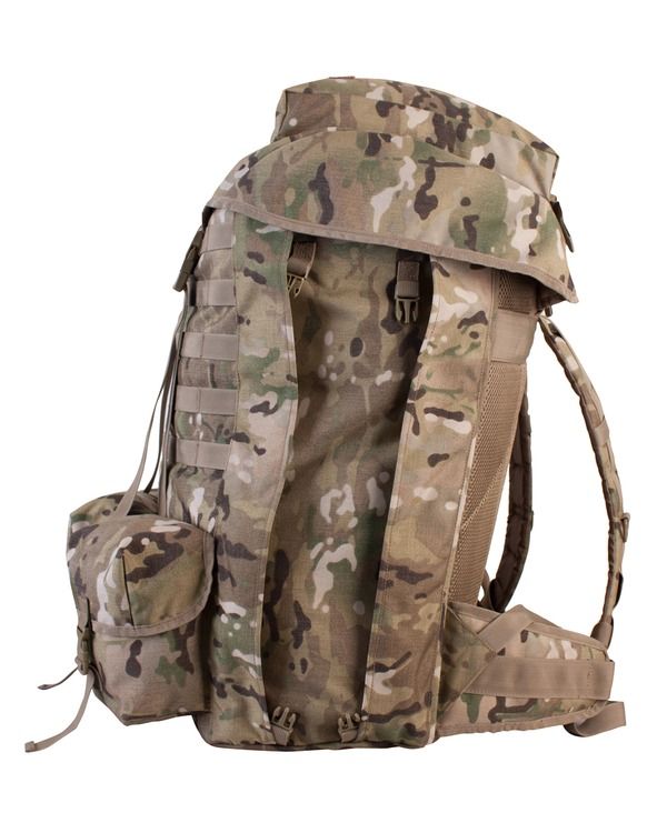 • Massive 100 litre capacity • Floating removable lid with zipped top and inside pocket • Polycarbonate stiffened for strength • Airflow spacer fabric back for maximum comfort and breathability with 10mm closed cell foam padding • Shorter and wider than the current Issue Bergen’s to sit above webbing systems • 3 utility pockets on front • Molle straps on front • Zips on side to take PLCE side pockets • Contoured shoulder straps with sternum strap • Waist belt • Compression straps • Carry handle