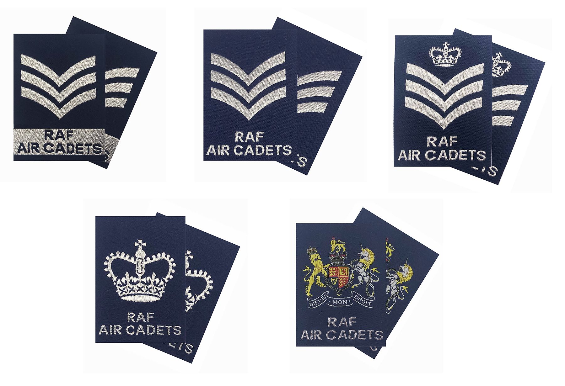 Available in a range of ranks including Acting Sergeant, Sergeant, Flt Sergeant and Warrant Officer ranks in both Class 2 (Crown only) and Class 1 (Royal Coat of Arms).