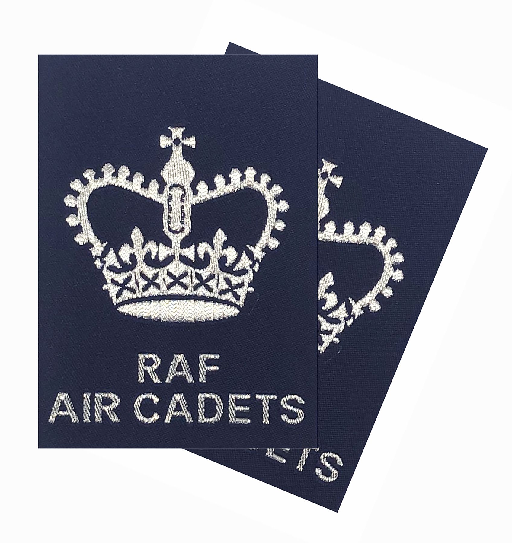 Regulation RAF Air Cadet Blue Woven silver embroidered rank slides / epaulettes.