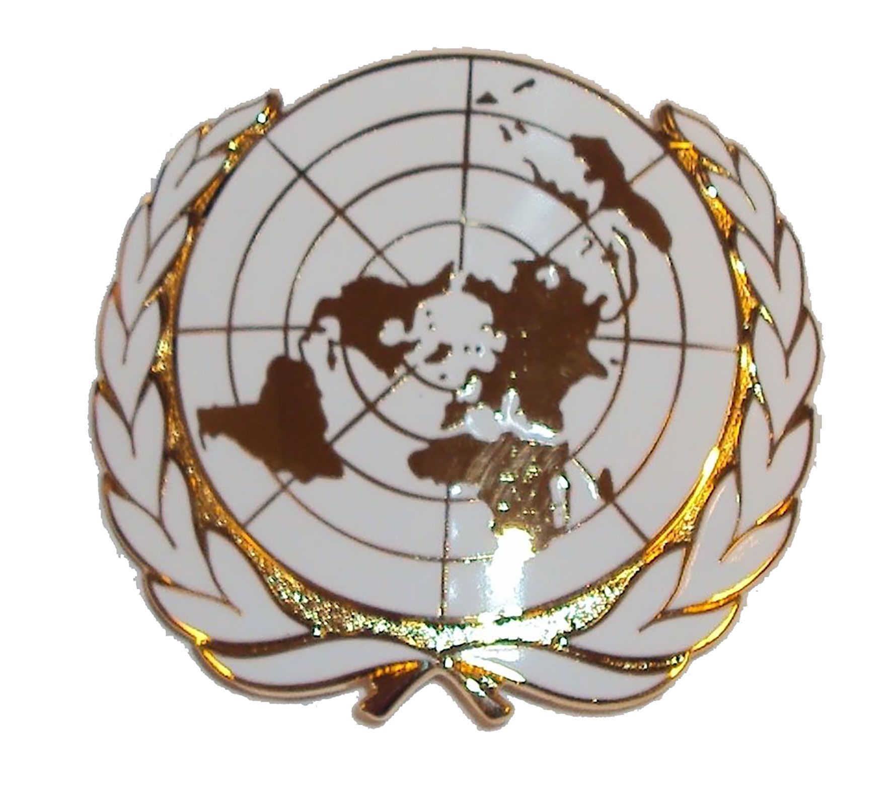Official Description: Badge, Organisation. Cap. All Ranks. United Nations. Gilding metal. Gilt and white enamelled finish. Globe within wreath.