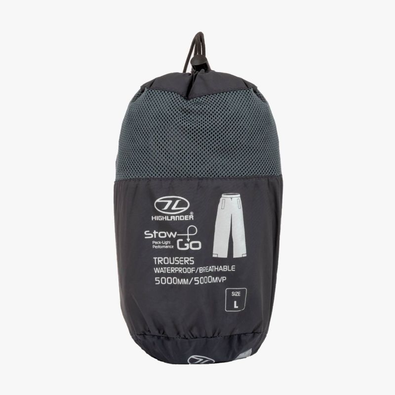- Packable into its own small carry bag the Stow & Go waterproof trousers can go with you even when space is at a premium or you simply don’t want to carry around bulky waterproofs