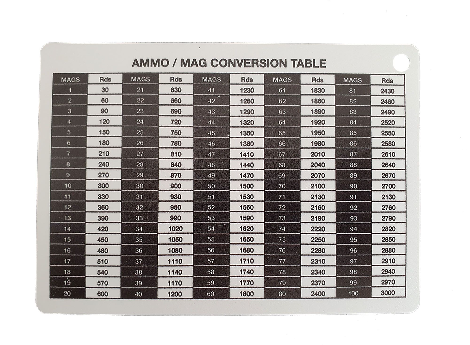 A6 - Printed Ammo / Mag Conversion Table Battle Slate Card (Double Sided)