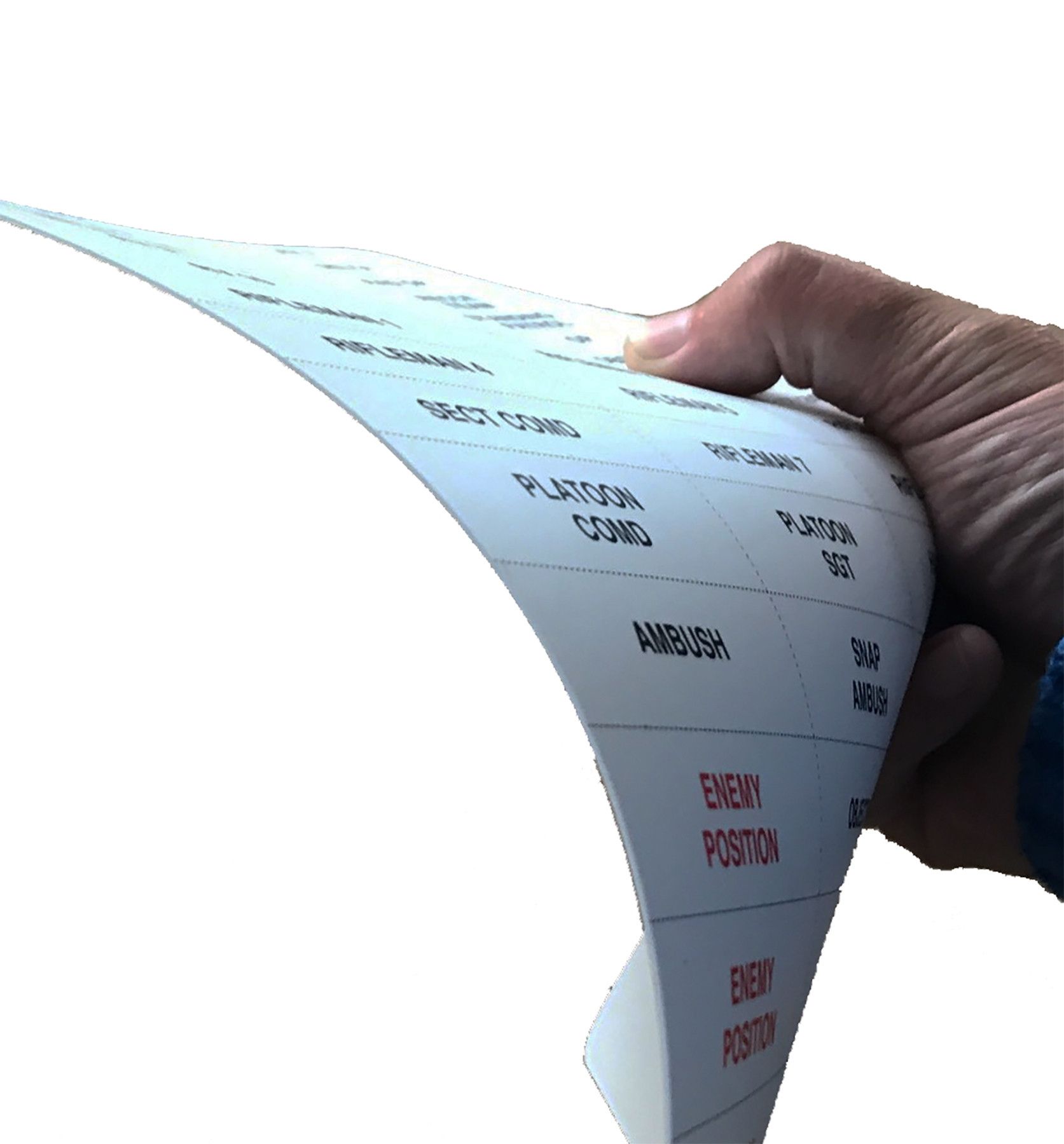 "The waterproofed cards have a white background and the reason for this, is that when light is fading or orders are given in light proof shelters, tents etc with the use of artificial light, they are the only cards you can make out. When you have coloured backgrounds although they look good they are extremely hard to make out in fading light or under artificial lights."
