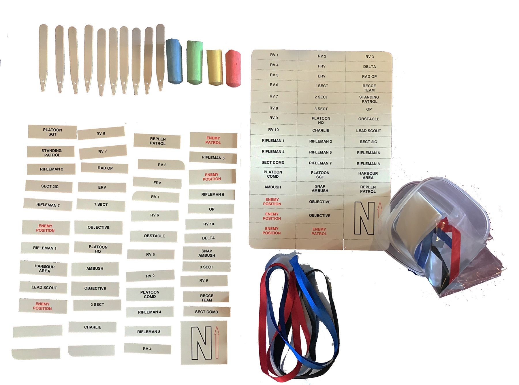"The lightweight plastic, unbreakable, waterproof cards have a white background and the reason for this, is that when light is fading or orders are given in light proof shelters, tents etc with the use of artificial light, they are the only cards you can make out.