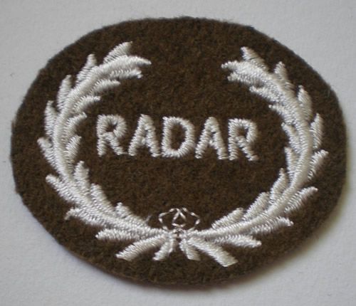Official Description: Badge Qualification. Army. Fire Control Operator. Cloth. Embroidered. White on khaki."RADAR" in wreath.