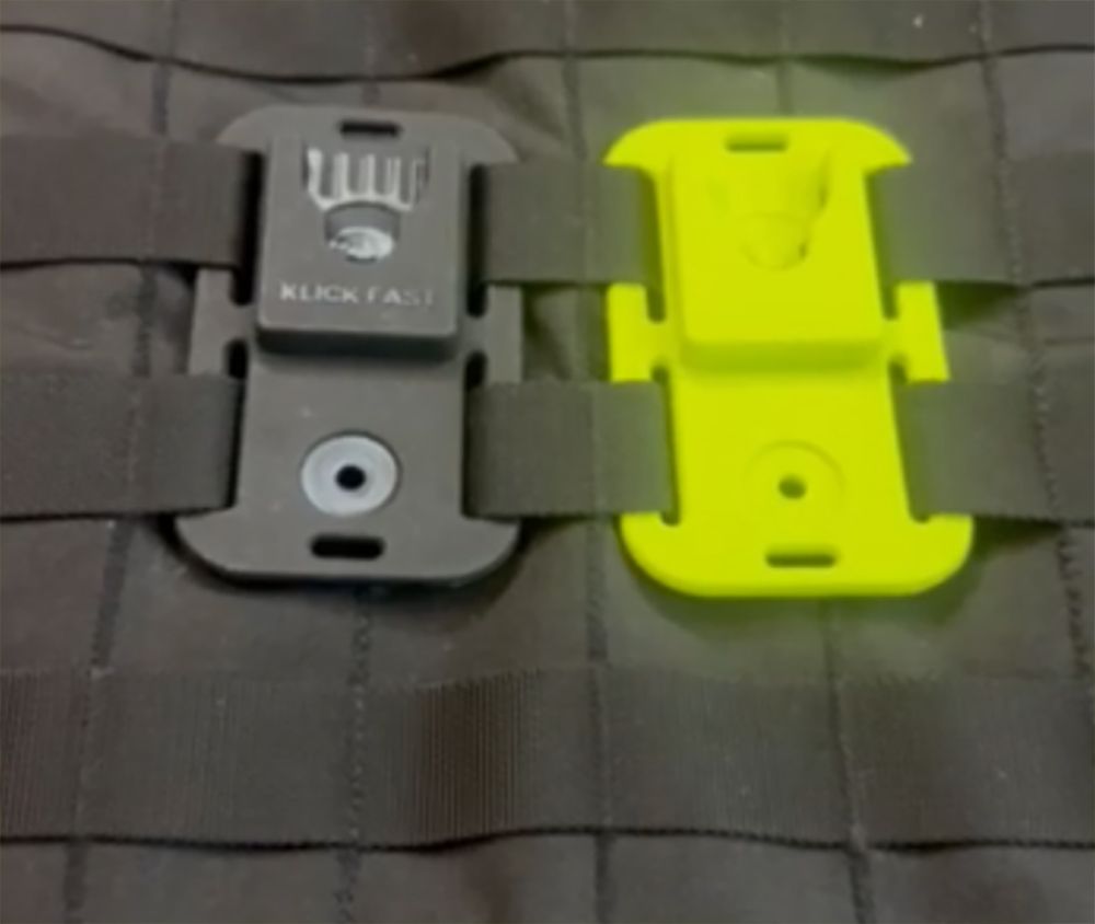 The Klick Fast Quad MOLLE Dock allows secure and easy attachment to any MOLLE / PAL's surface