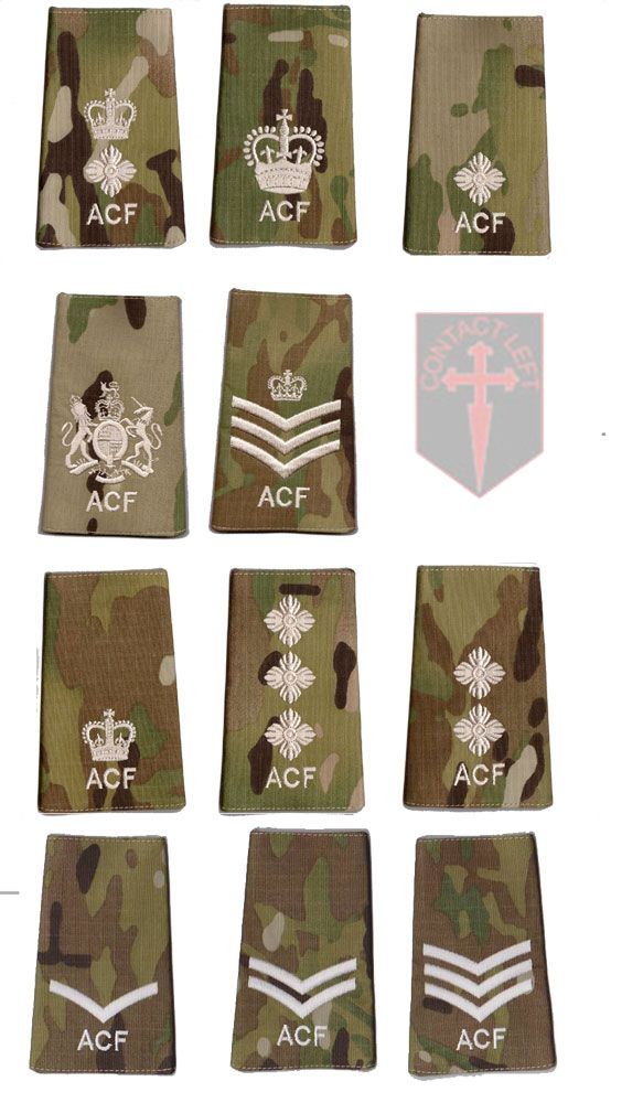 Contact Left Limited have been tasked with making many Army Cadet Force and Combined Cadet Force rank slides including some of the UK's largest Cadet Units and are also pleased to be selling the generic ACF rank slides in official 100% IRR Crye Multicam material wich is an exact match to be worn on MTP.