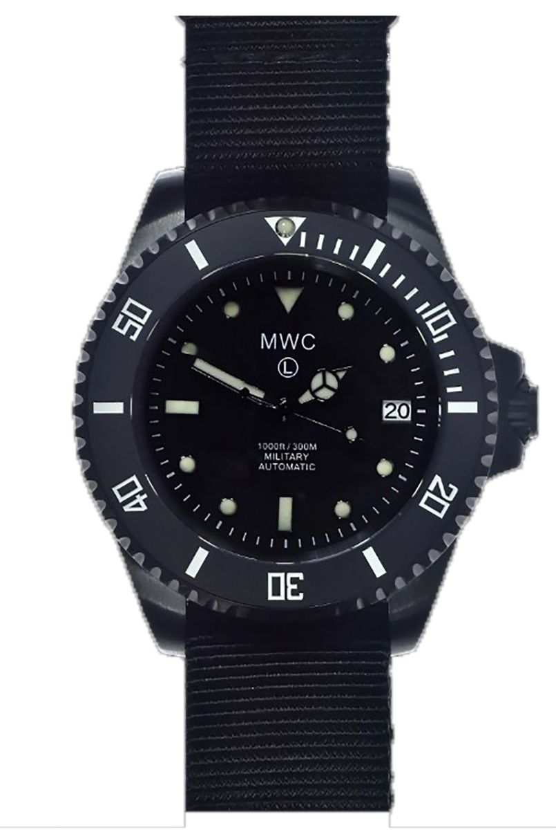 MWC 24 Jewel 300m Automatic Military Divers Watch with Sapphire Crystal and Ceramic Bezel in Black PVD Steel