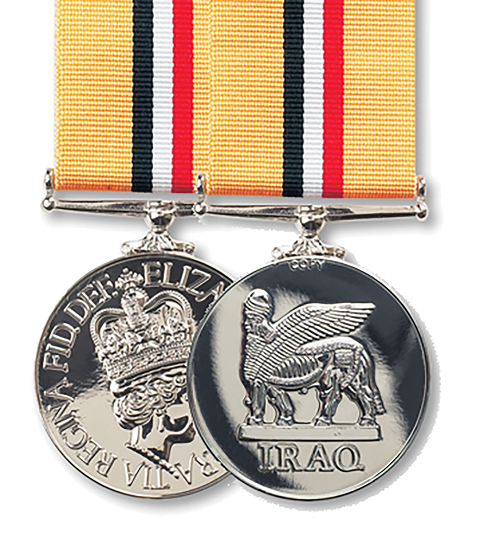 The Iraq Medal was awarded for 30 days continuous service on Op Telic in specified qualifying areas of the Middle East between specified dates during the build up to and the conflict in 2003.