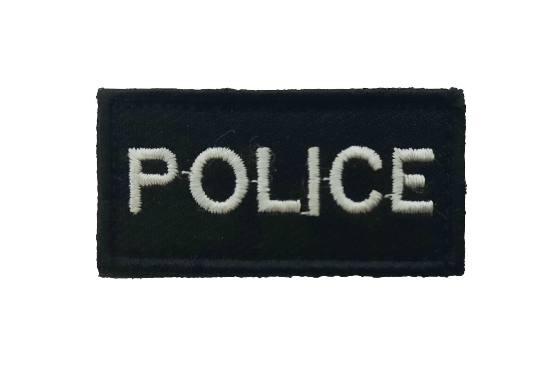 Miniature POLICE embroidered velcro backed badge 2" x 1" - **Police purchase only