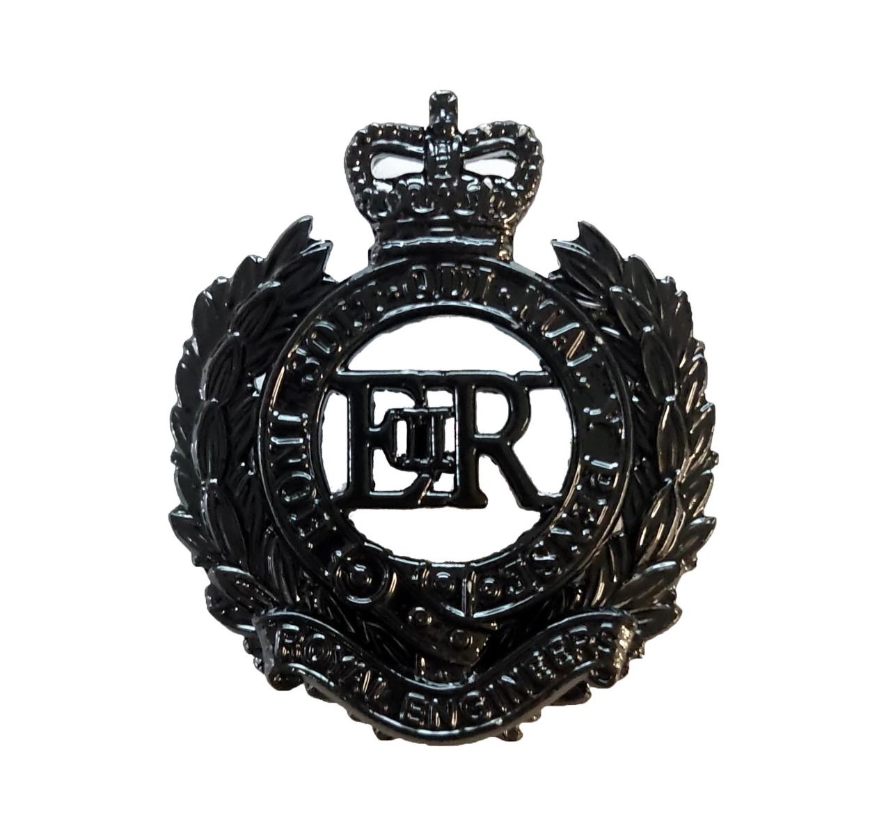 Black Royal Engineers Cap / Beret Badge (Issue Badges Coated Black)
