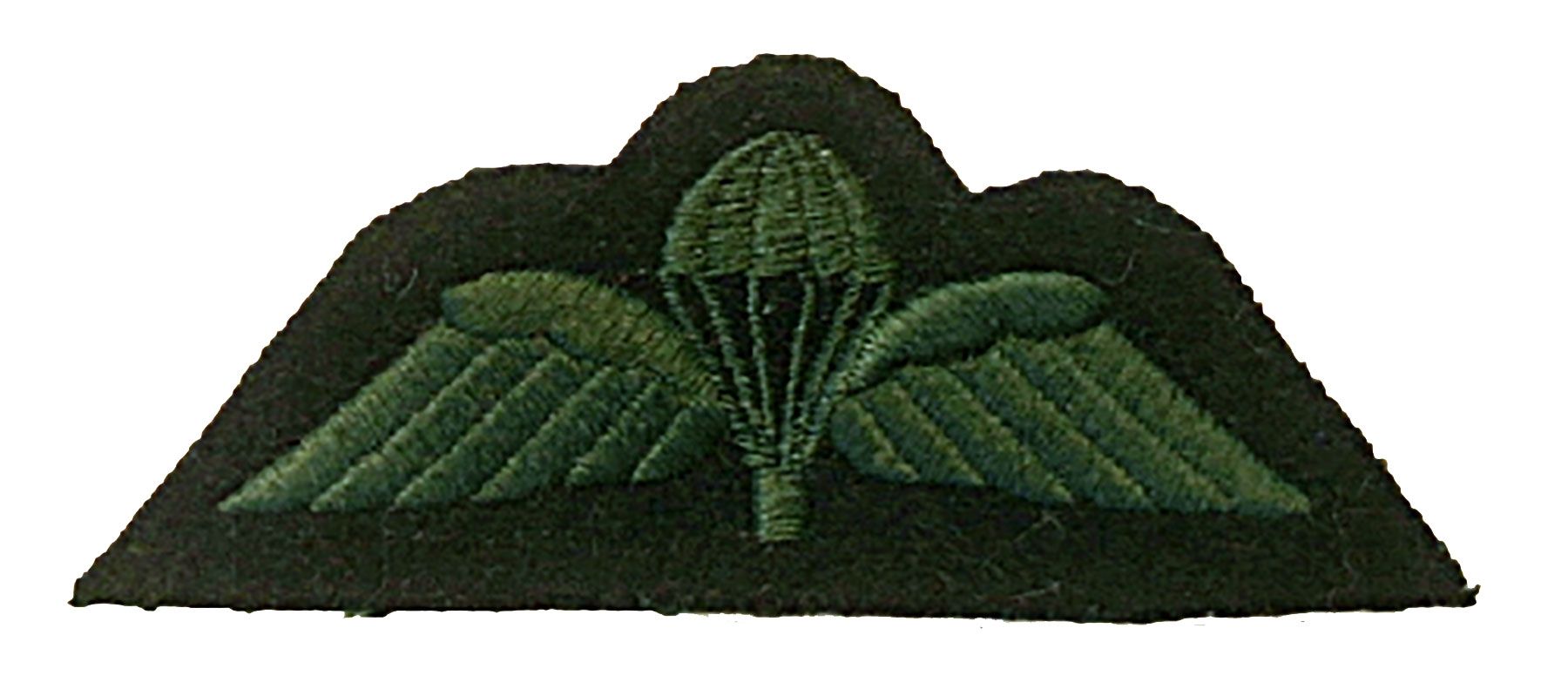 Embroidered. Piper green on black. Parachute with wings.