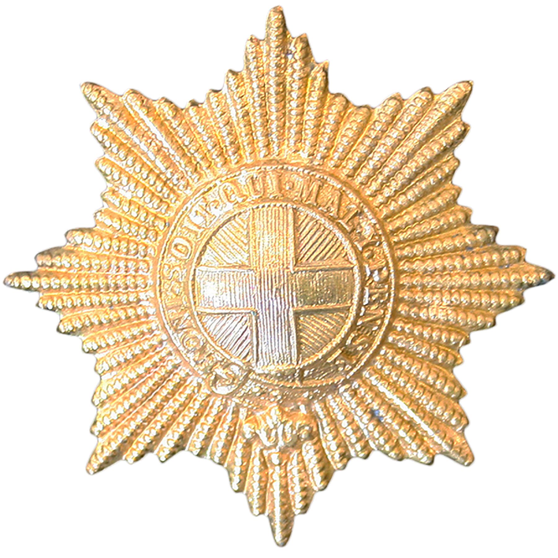 Official Description: Insignia, Organisational. Cap. Coldstream Guards. Soldiers; Aluminium. Anodised gold finish.