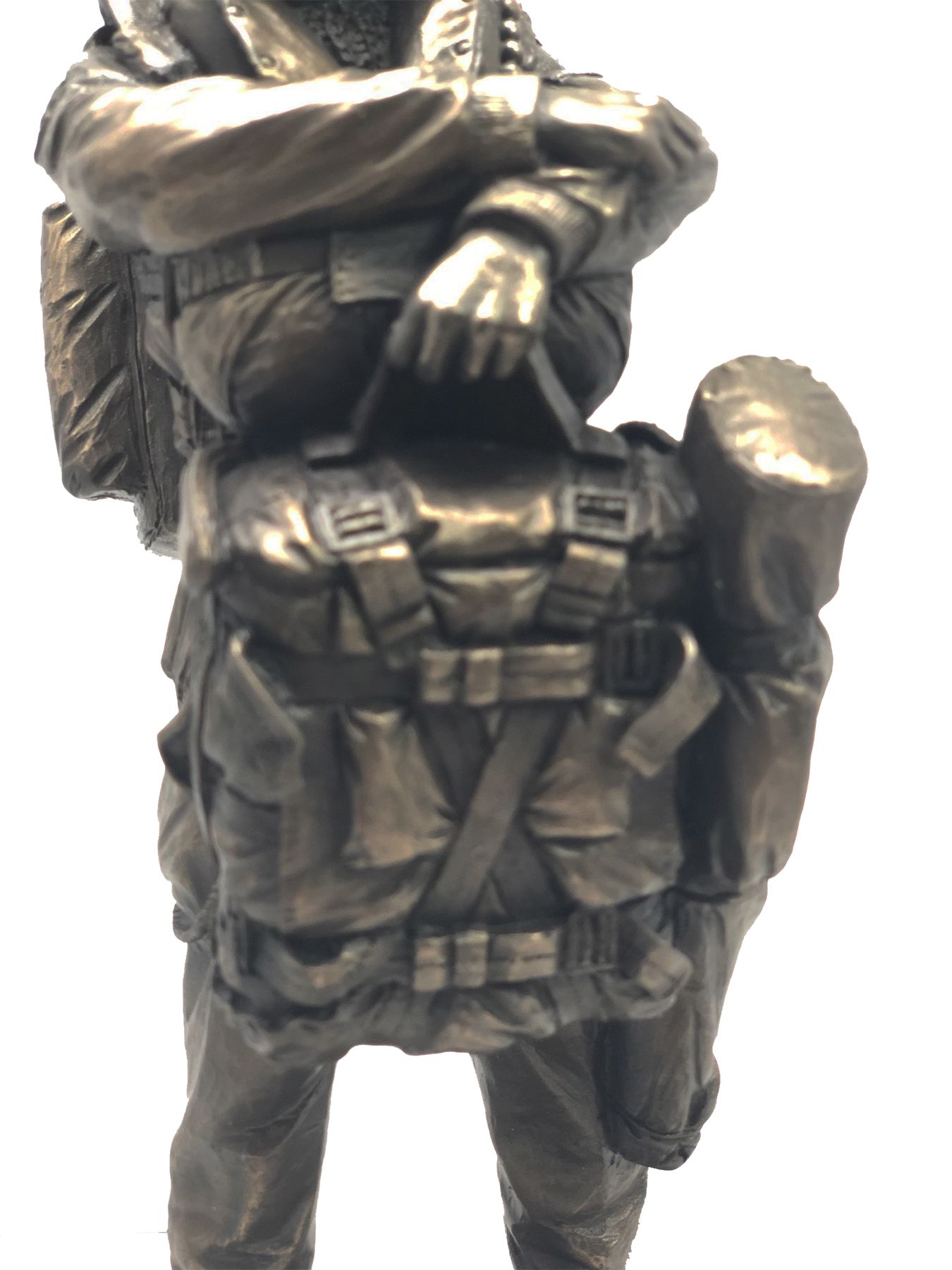This statue is made of Cold Cast Bronze and has stunning detail throughout, from the accurate clothing, equipment down to the detail of his face and Para Wings.